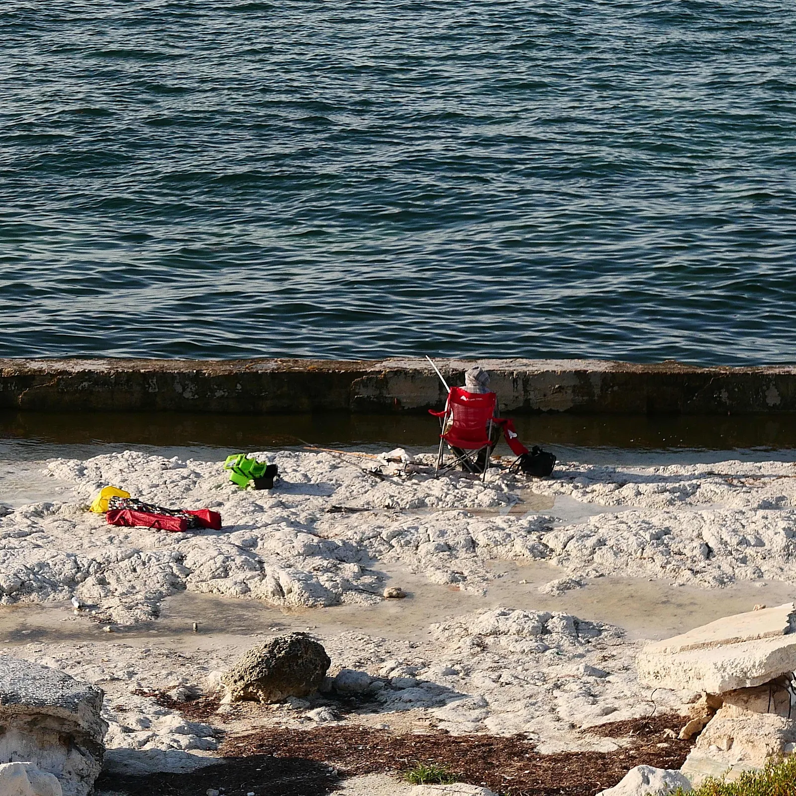 I see a lot of people fishing around here and I guess they outnumber me, dozens of anglers to one photographer usually. Occasionally I see camera carriers with tripods and filters and serious looks hunting the ideal sunrise. The picture below I didn't clean up and you can see the ocean sliding off to the right! Drives me nuts but I'm not driven to complicate my walks with apparatus. The drive to overcomplicate things drives me equally nuts.