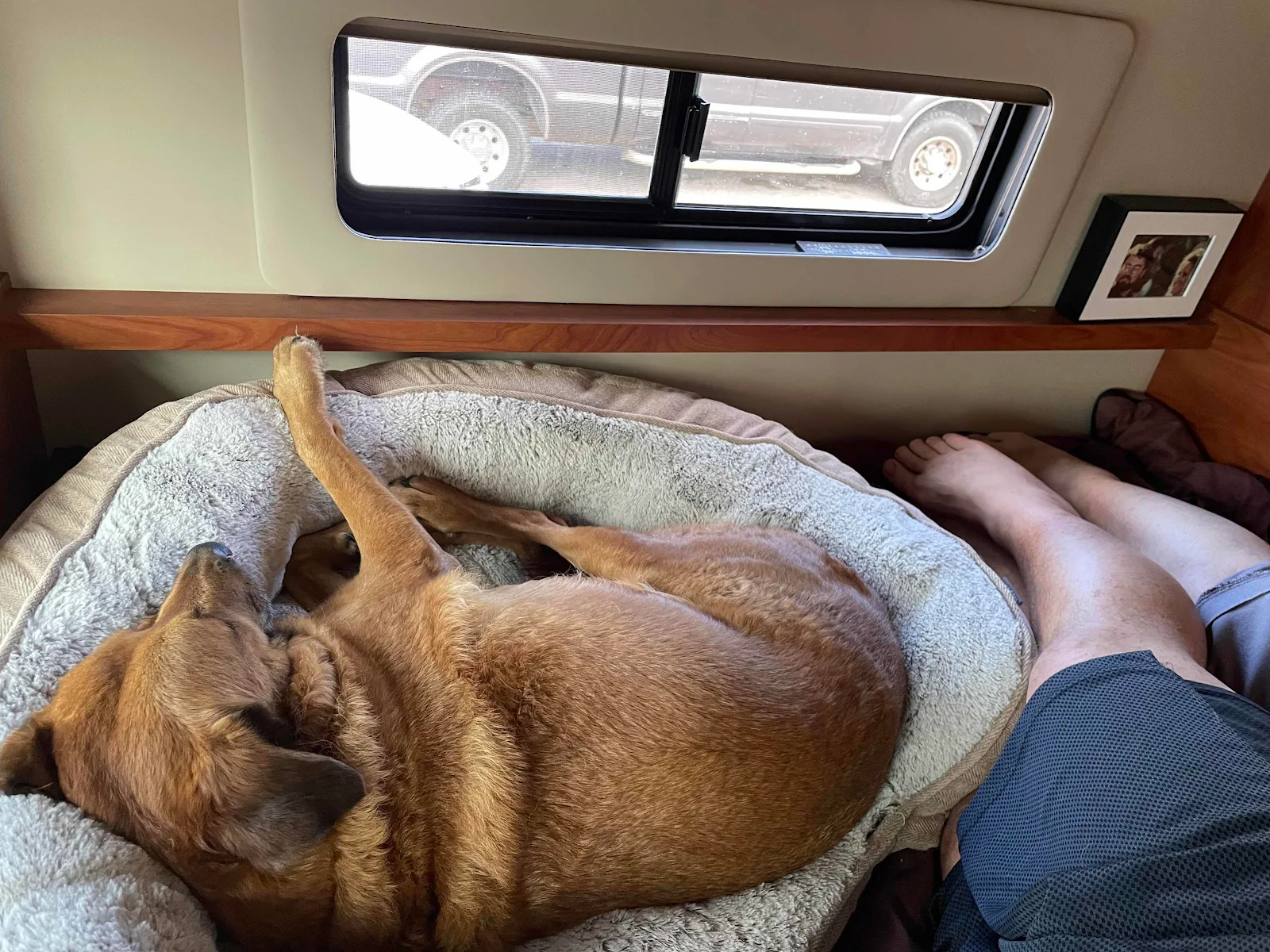 We took our lunches back to the air conditioned van where Rusty was lying in State.
