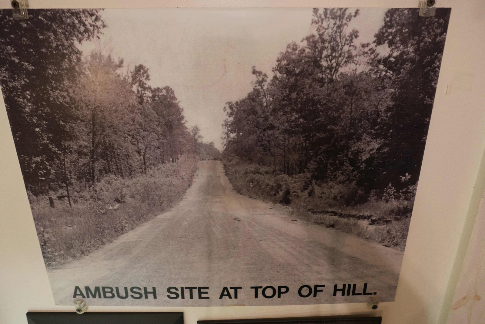 1934 was a time when photography was in full swing and there is a ton of pictures online surrounding the last day of Parker and Barrow but I was surprised by the number of pictures in the museum that I had not seen online. We were going down the road to the spot itself which was of much greater interest to me and I noticed how the road looked back then.Gibsland was seven miles behind the photographer and the hill on the horizon is where the markers are now.