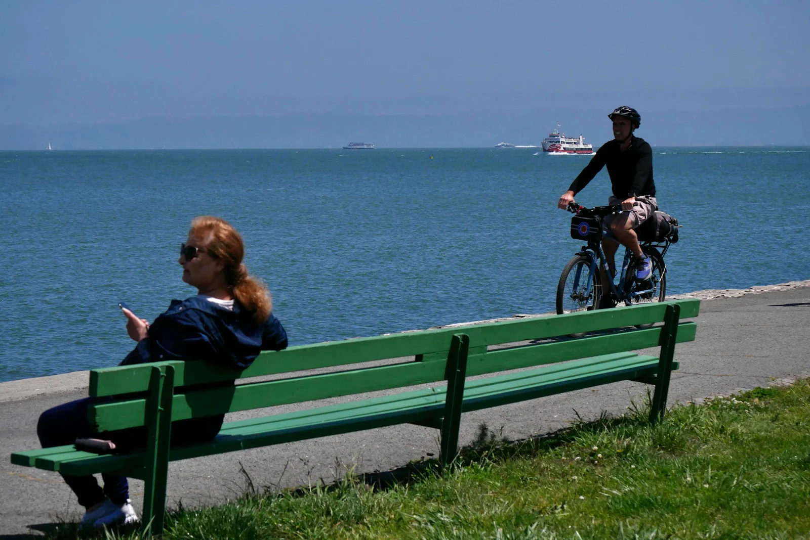 …to Marina Green across from Alcatraz Island to enjoy the sun breaking out, the breeze cooling everything off and the views, unparalleled except perhaps by Sydney, a city I have never seen but in photographs. We were parked on the waterfront with the bay spread before us from the Golden Gate all the way past Alcatraz.