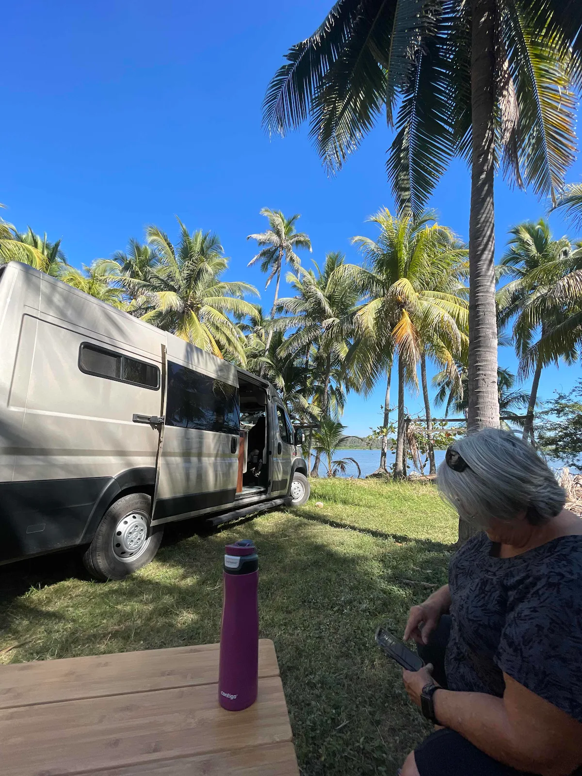We needn’t have worried. The turtle eco center at the end of the road was closed for the day and we found a tiny turn out to accommodate our modest 21foot home. The surf was huge so swimming wasn’t an option. Rusty and Layne and I went for a walk. It’s always tiring working your way around a strange city doing your chores.