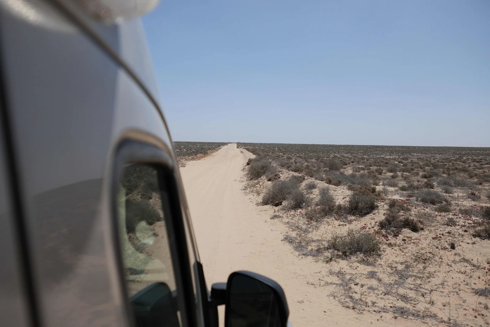 On the turn outs to coastal communities there is room to pull over, make a cup of tea, ponder the infinite nature of the universe and listen to the sand filled wind. About the time Rusty gets a burr in his paw it’s time to leave anyway and get back on the road for a few more hours. Signs of life? None.