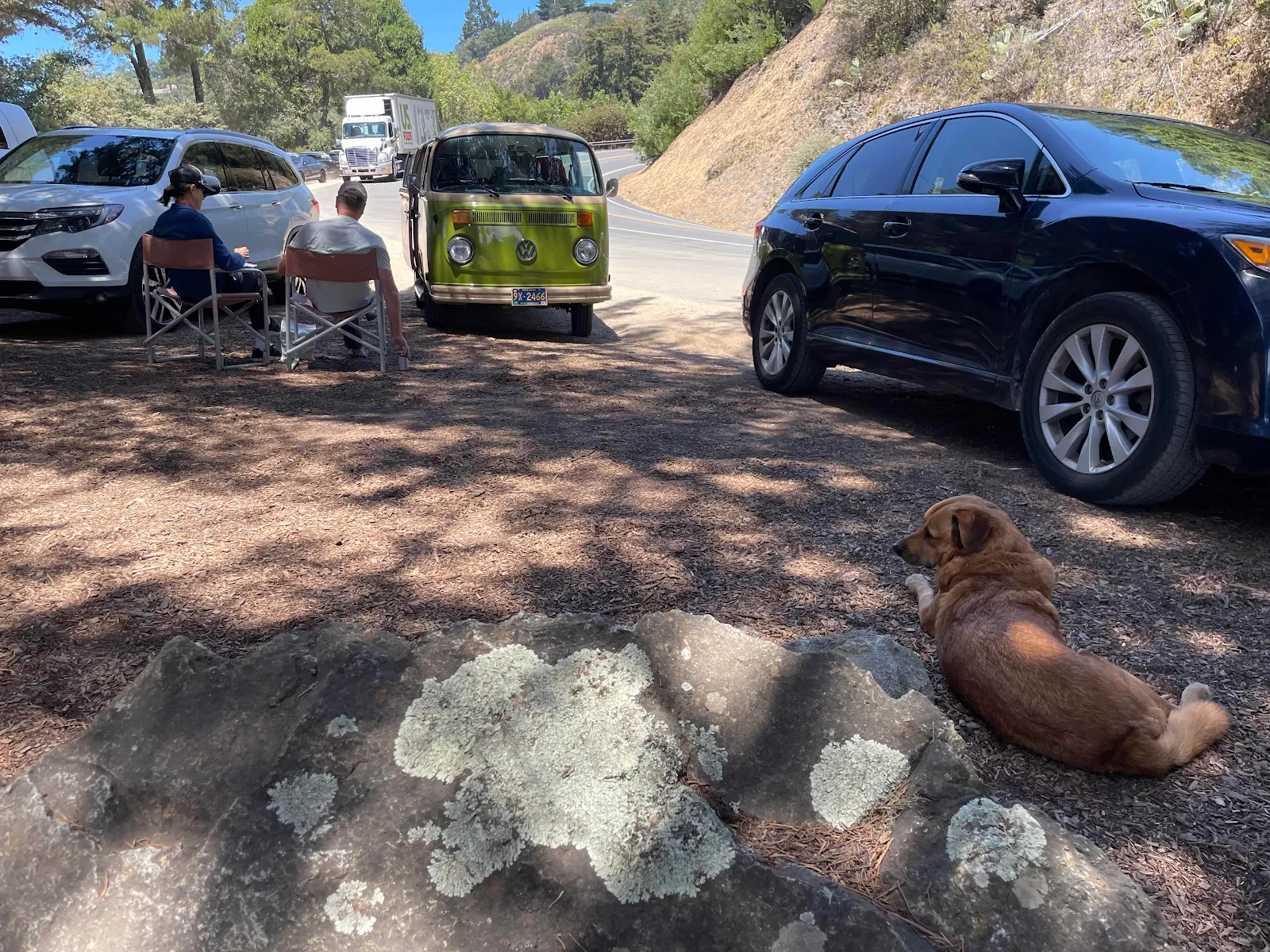 Restaurant time for us equaled van time for Rusty and he was glad to get out and sit for a while after we got back. There was a Volkswagen couple picnicking next to us which struck me as odd. There are much more scenic spots to enjoy than a restaurant parking lot. Good enough for Rusty…good enough for them.
