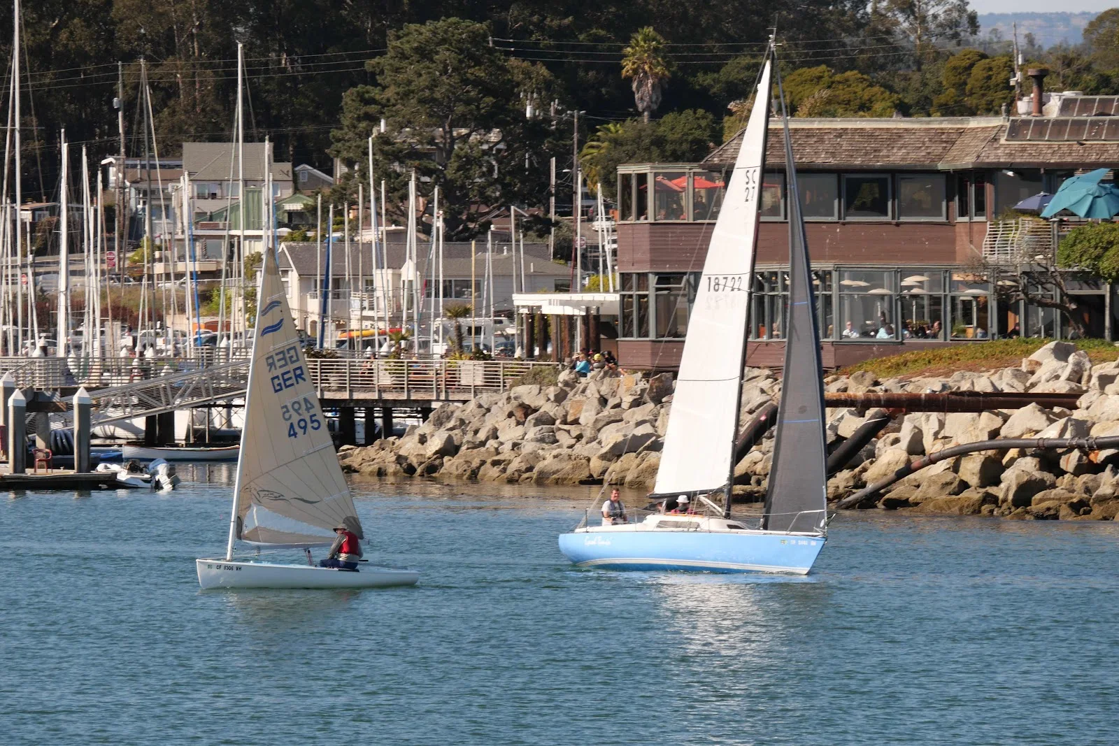 Most of the boats in Santa Cruz are designs from when I used to live in the harbor and sailed these waters. This is a Santana 30 as shown in the design on the sail.