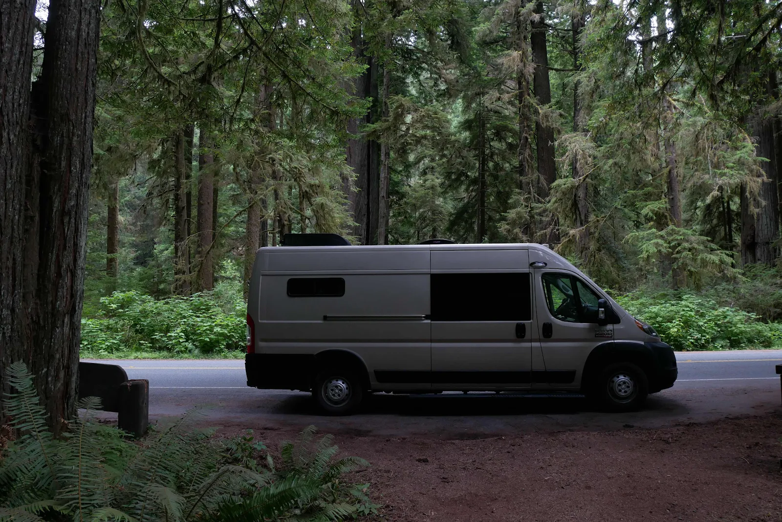 After our second night parked alongside Mattole Road we made a u-turn and drove north up the hill toward Ferndale 25 miles and 90 minutes away. The road was pretty awful, not as bad as the southern approach through Petrolia but it was a rough unpredictable ride mixing newly paved bits and ghastly potholes in rapid succession.