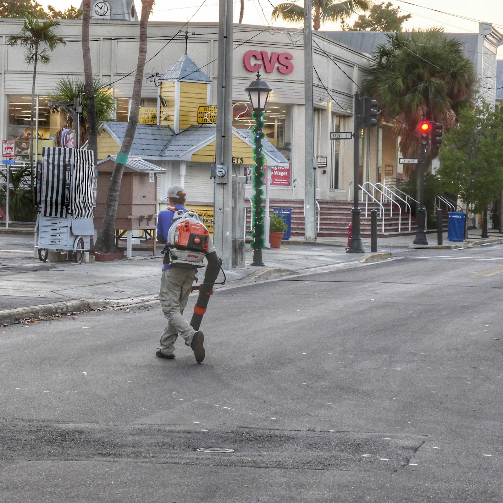 A solitary homeless woman in yellow and myself on Duval. I saw her later on Front Street glaring at me. She’s making Key West work for her and I admire her tenacity.