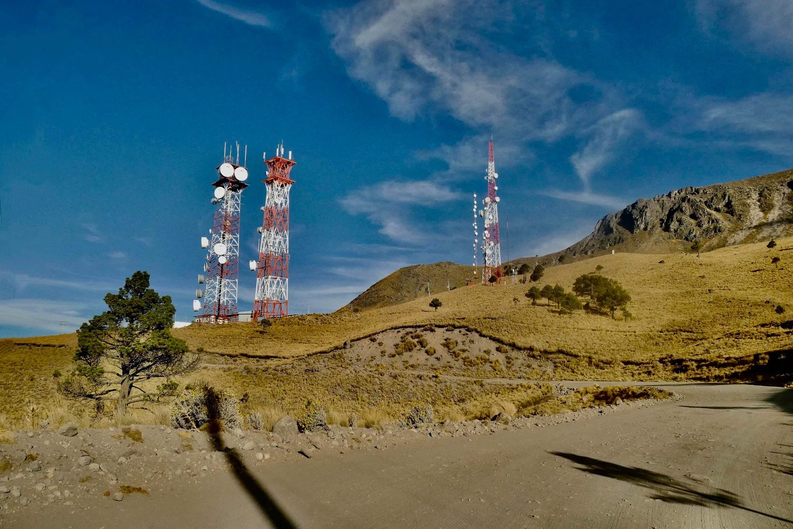 It was bumpy owing to the many rocks peppering the surface but in between the rocks the road was covered with gray talcum powder. Subsequently that dust got onto every surface of GANNET2. Brilliant. But the scenery as we climbed the mountainside, The Nevado de Toluca, the views were worth it.