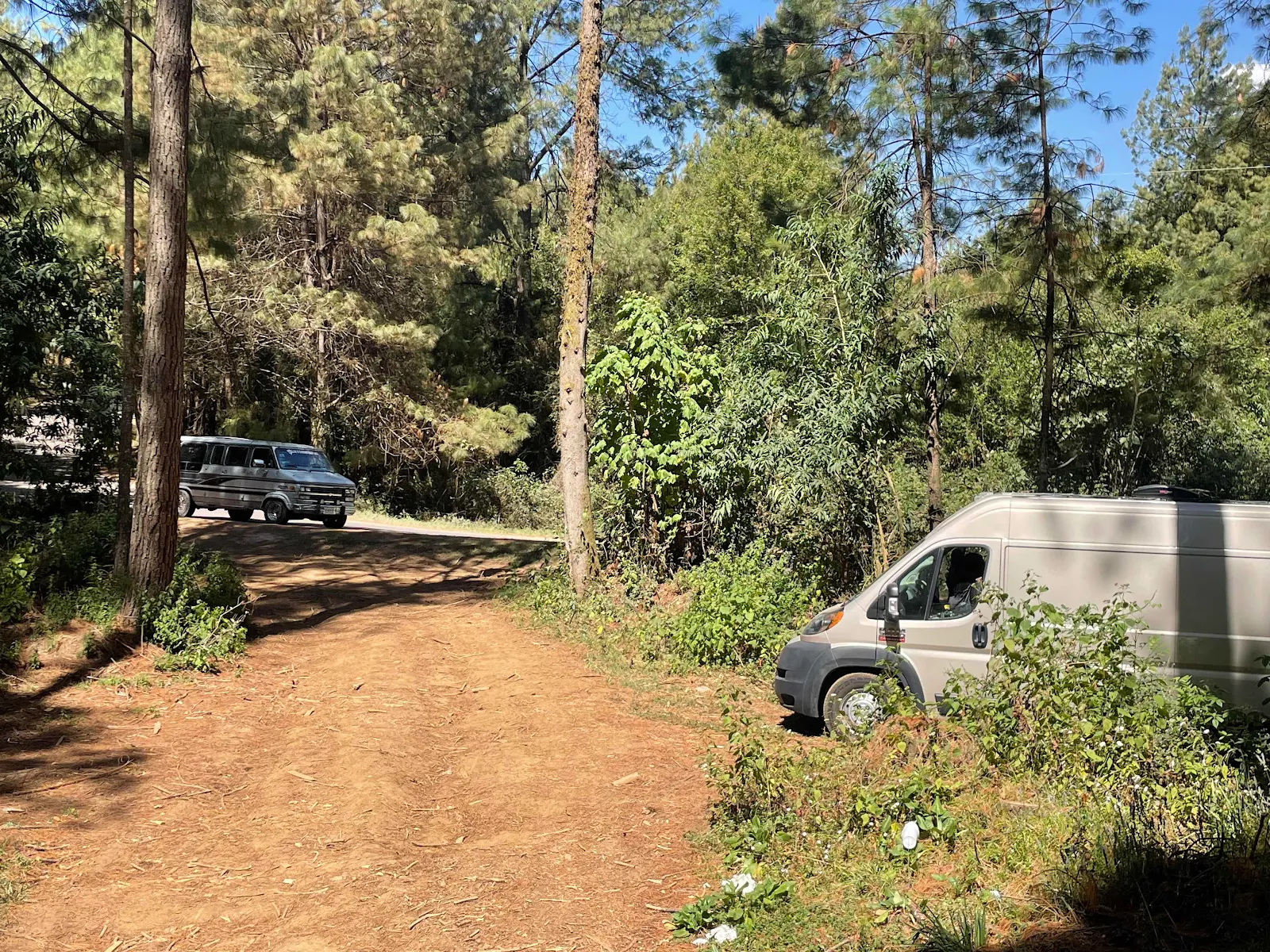 We were on a logging road with a small turn out large enough to fit GANNET2 out of the way of any traffic. It felt remote as hell to us but there is always someone around in Mexico and over Laynes’s objections I pulled back off the torn up dirt road. She was afraid of sinking but I was confident the ground was solid. I could hear chain saws up above us and sure enough a car went bouncing by later!