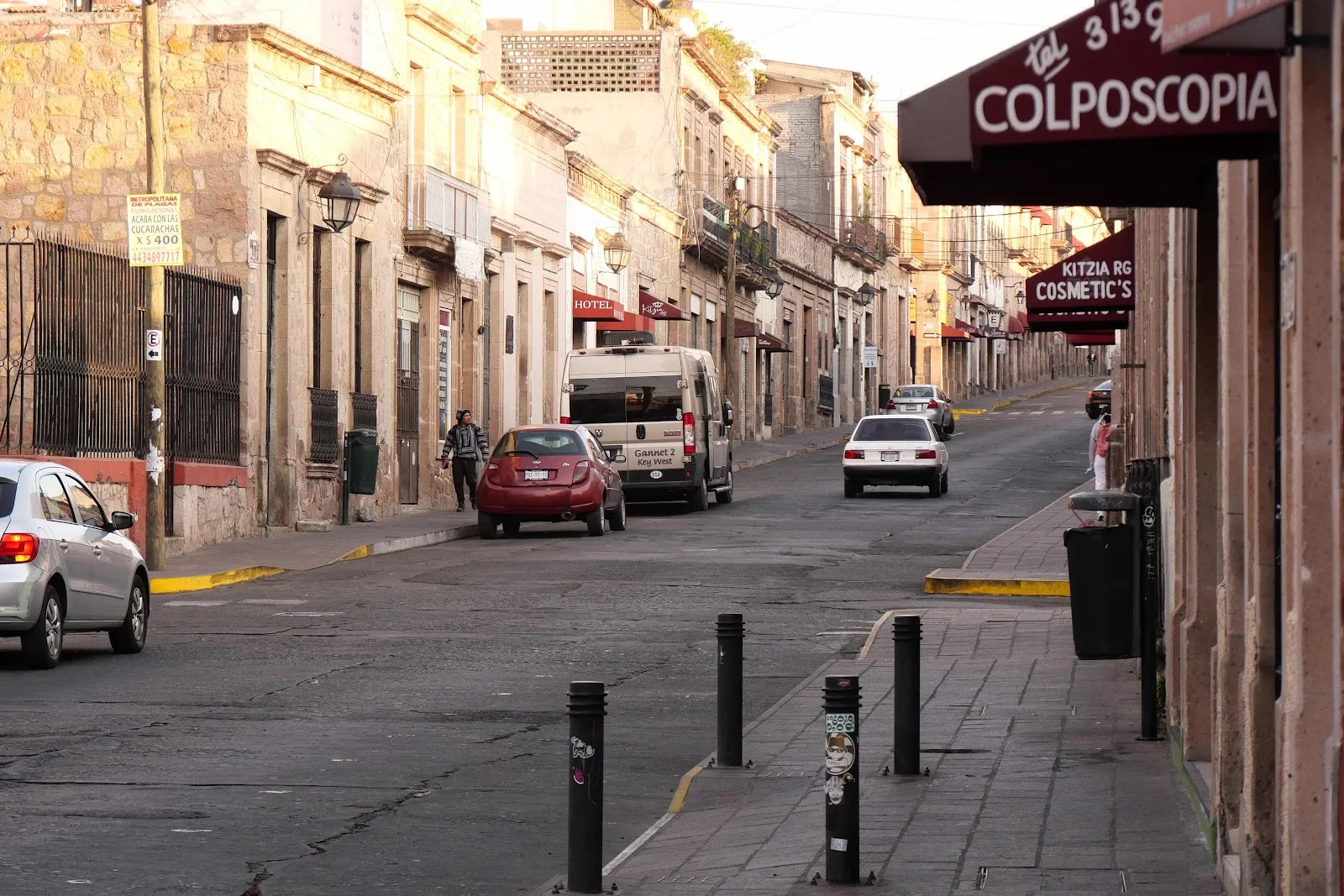The historic downtown is pretty empty around seven in the morning and we cruised the street grid looking for a good spot to park GANNET2 while we went a-touristing. The van you see below is a collectivo, a fixed route minibus that picks up and drops off passengers on demand for a very small fare. Quantity not quality of riders means they drive fast to make money.