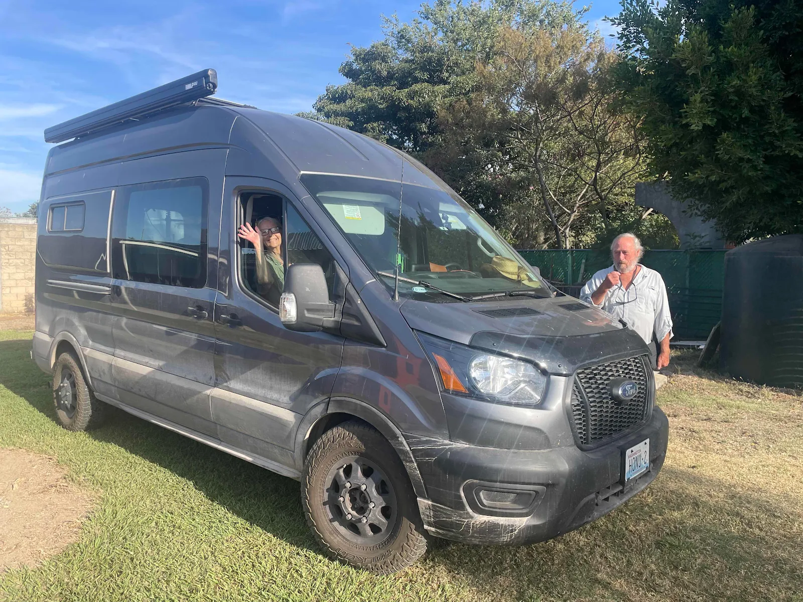 A Mexican Promaster in the background behind Cali, across from us we have yet to meet. They are from Mexico City I’m told and have a luxurious annex attached to their van with inflatable couches in the shade.