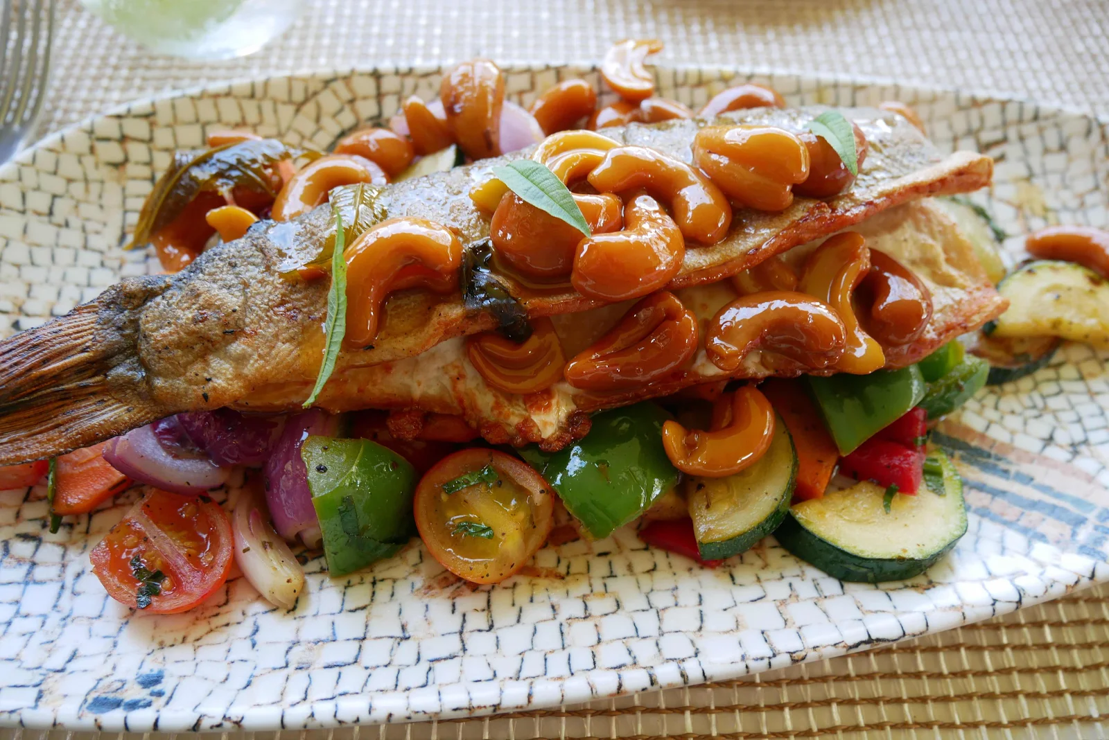 Layne had clams and chorizo while Gaetano and I had trout in an orange cashew sauce.