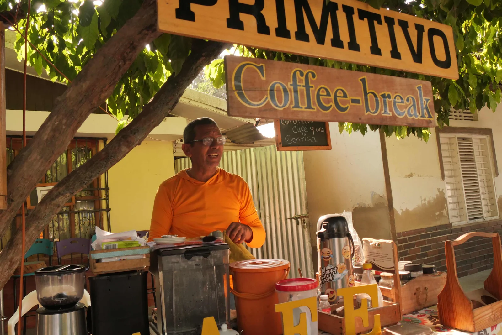 The guy selling the coffee across the street, at twice the usual price, did the tourist thing and chatted with us while we waited for the gate to open.