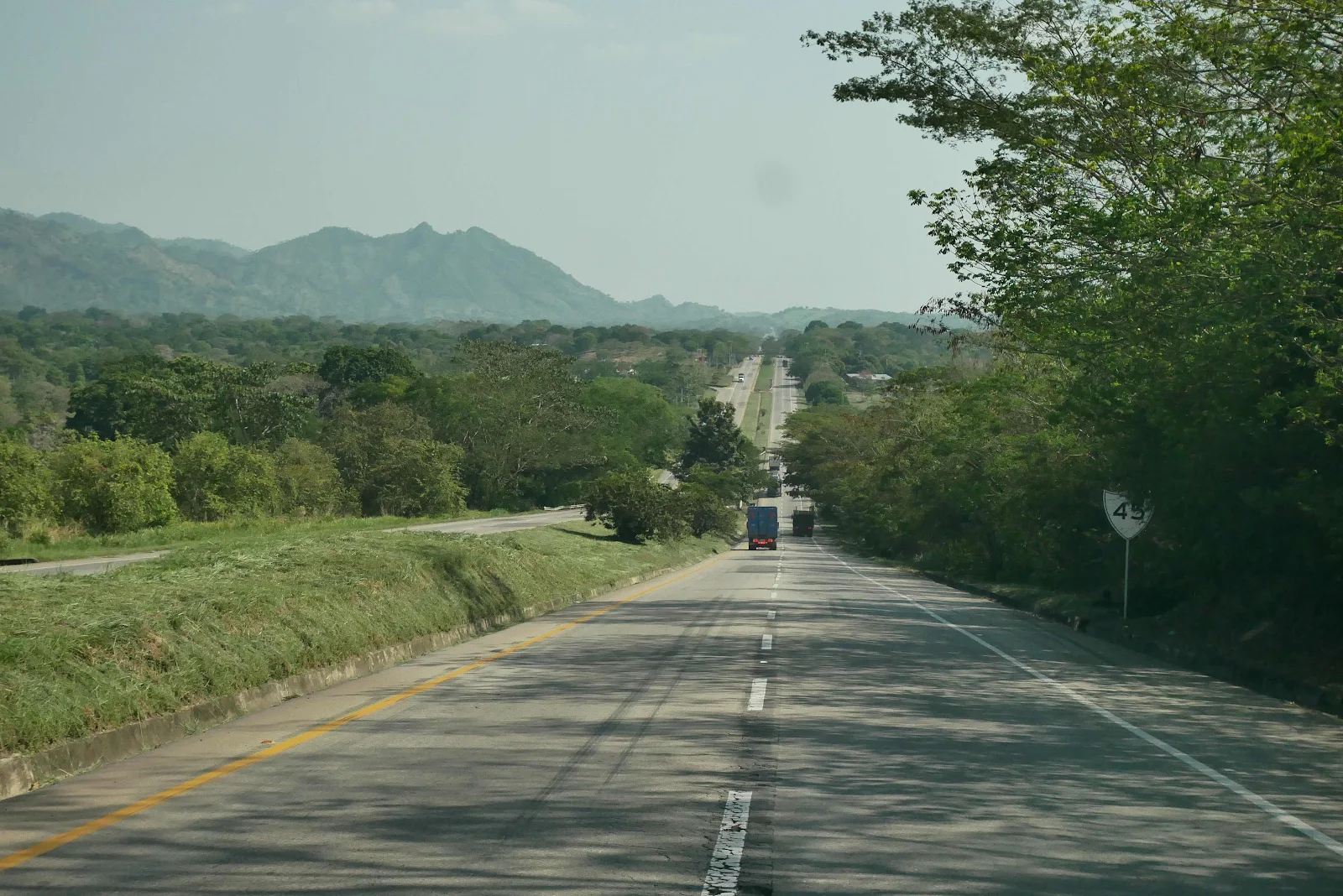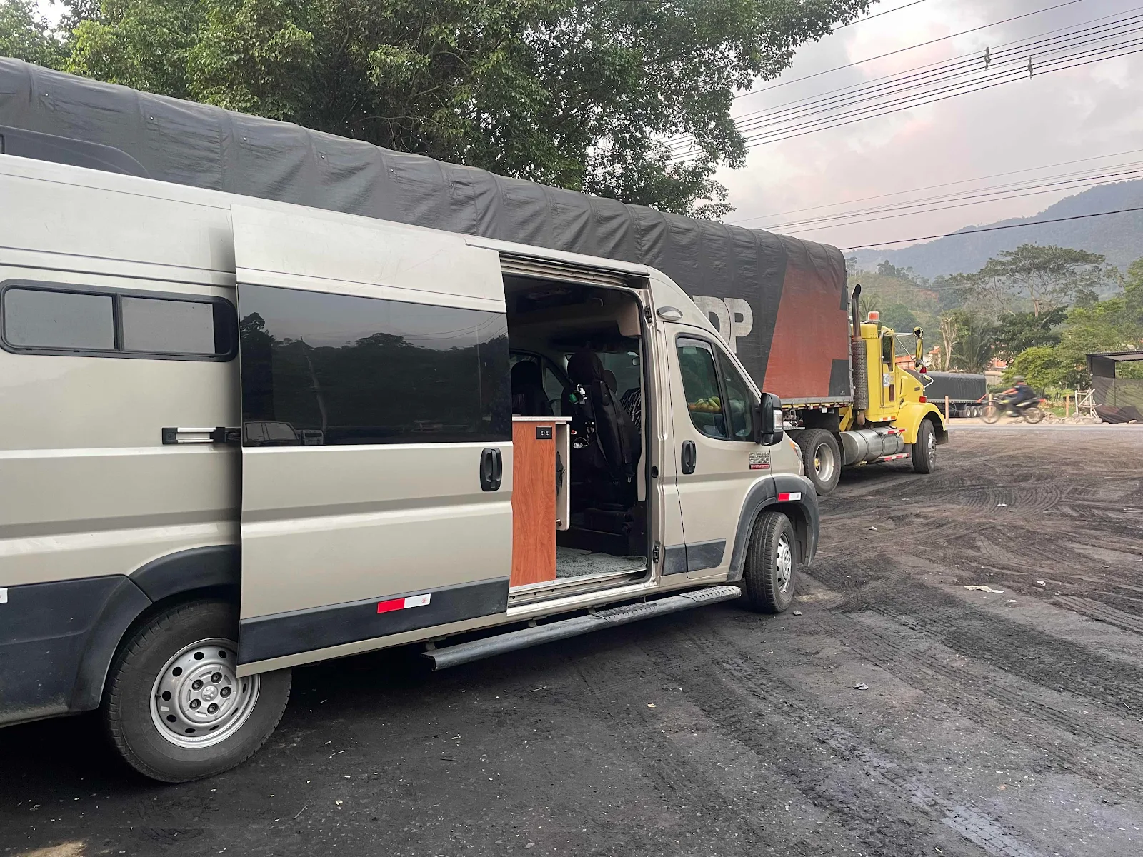 We were stopped by a police checkpoint, the only one to flag us down the whole day. We chatted and he ended up giving us some useful tourist tips and demanded no bribes and made no threats. A fist pump and we were on our way to our overnight stop, one more scenic Colombian truck stop.
