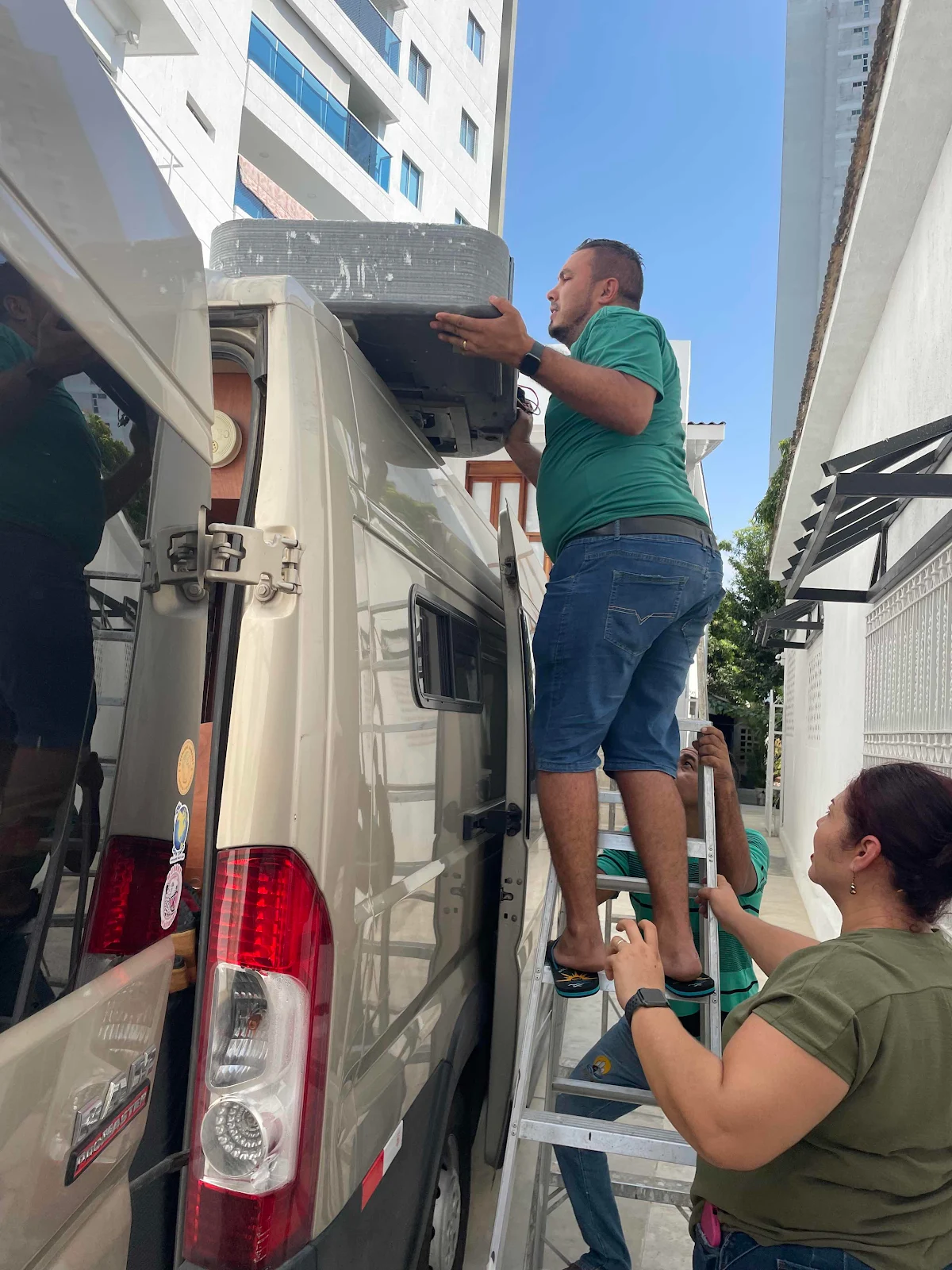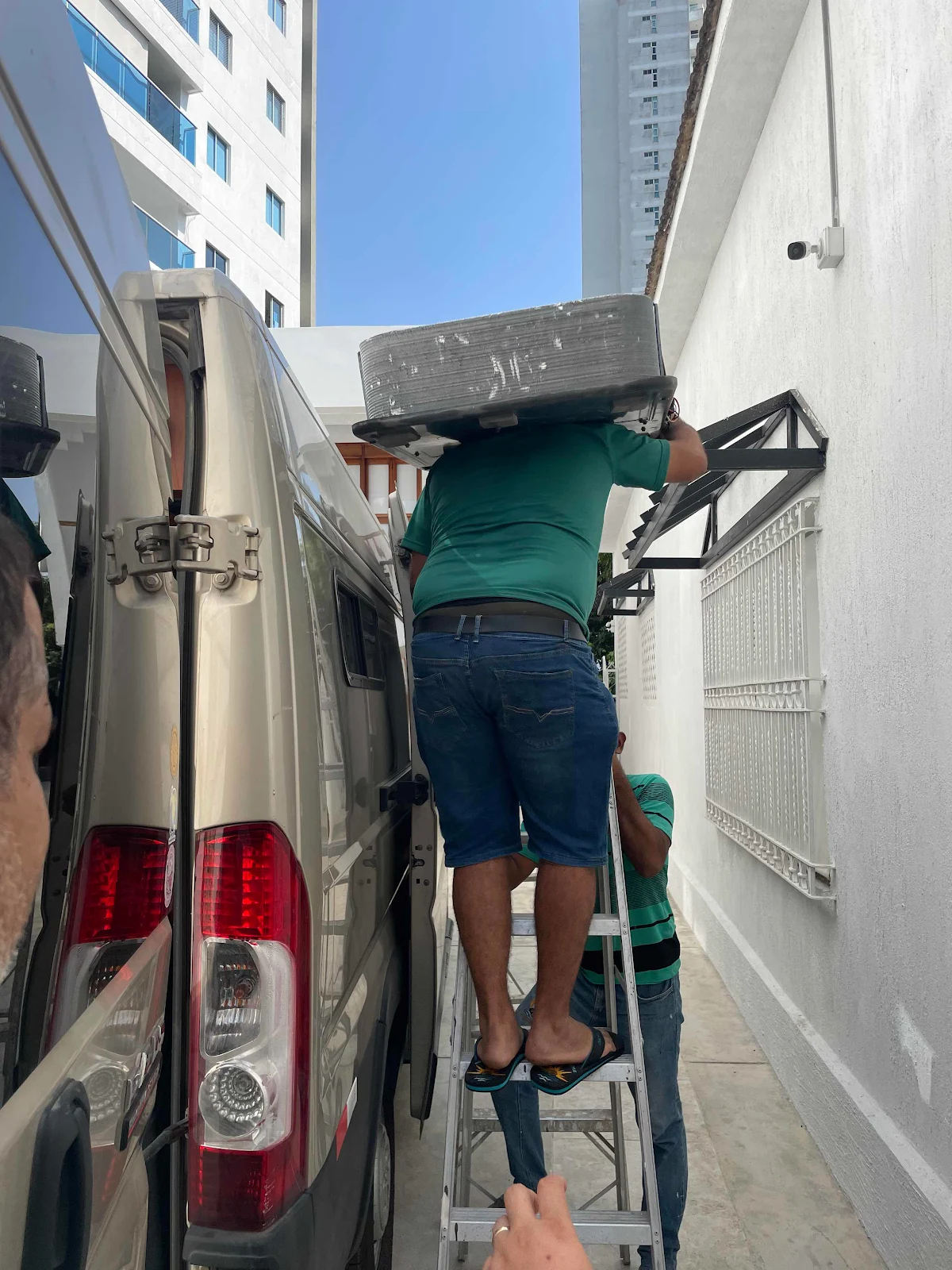 Sergio flew to Cartagena Friday lunch time. Shortly thereafter he was shouldering the burden of our air conditioner.