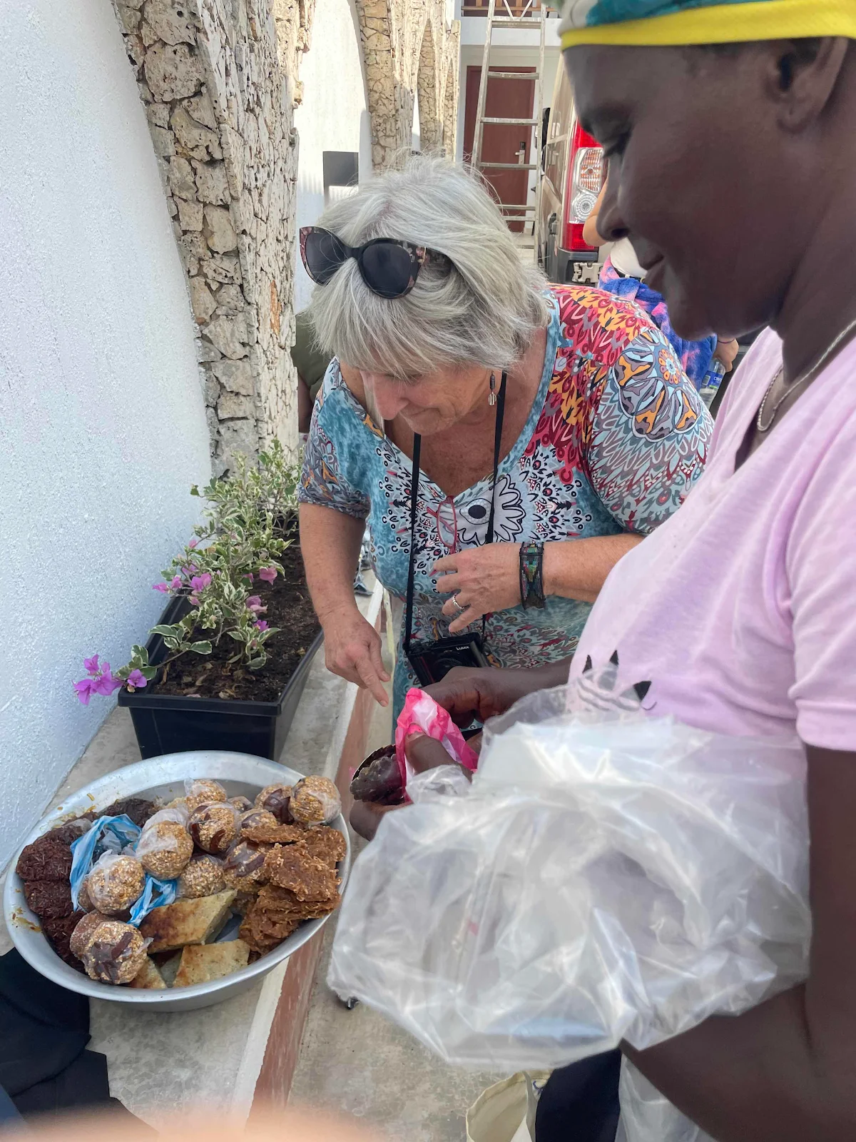 But we did end up with an after installation gathering as a candy seller came by with assorted fruit flavored concoctions. Sergio, his family and all stood around chatting and munching silvered her wares: