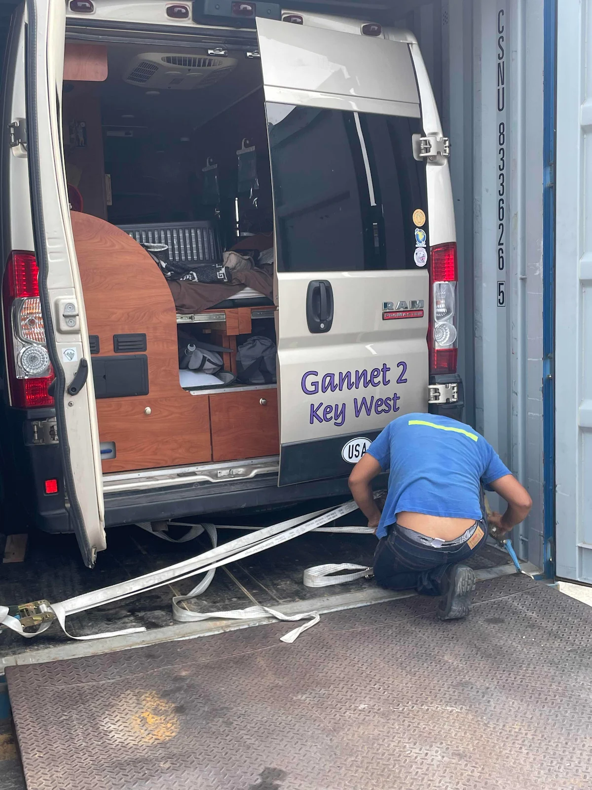 All this took place on Monday. Our containers arrived in port Thursday evening. Our shipping agent Ana Rodriguez had a notarized power of attorney to act on our behalf dealing with customs and she started the paperwork on Friday to allow the vehicles to be removed from the containers, which are much in demand these days.