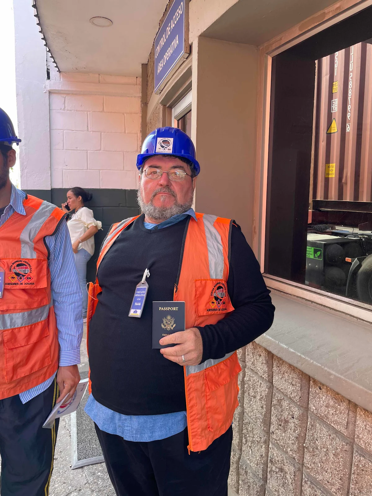 The rules to enter the port are laborious and strict. Long sleeves, long pants closed toed shoes ( in 95 degrees and 100% humidity!) a high viz vest and hard hat provided by Ana’s office and a special pass visible at all times. Thus: