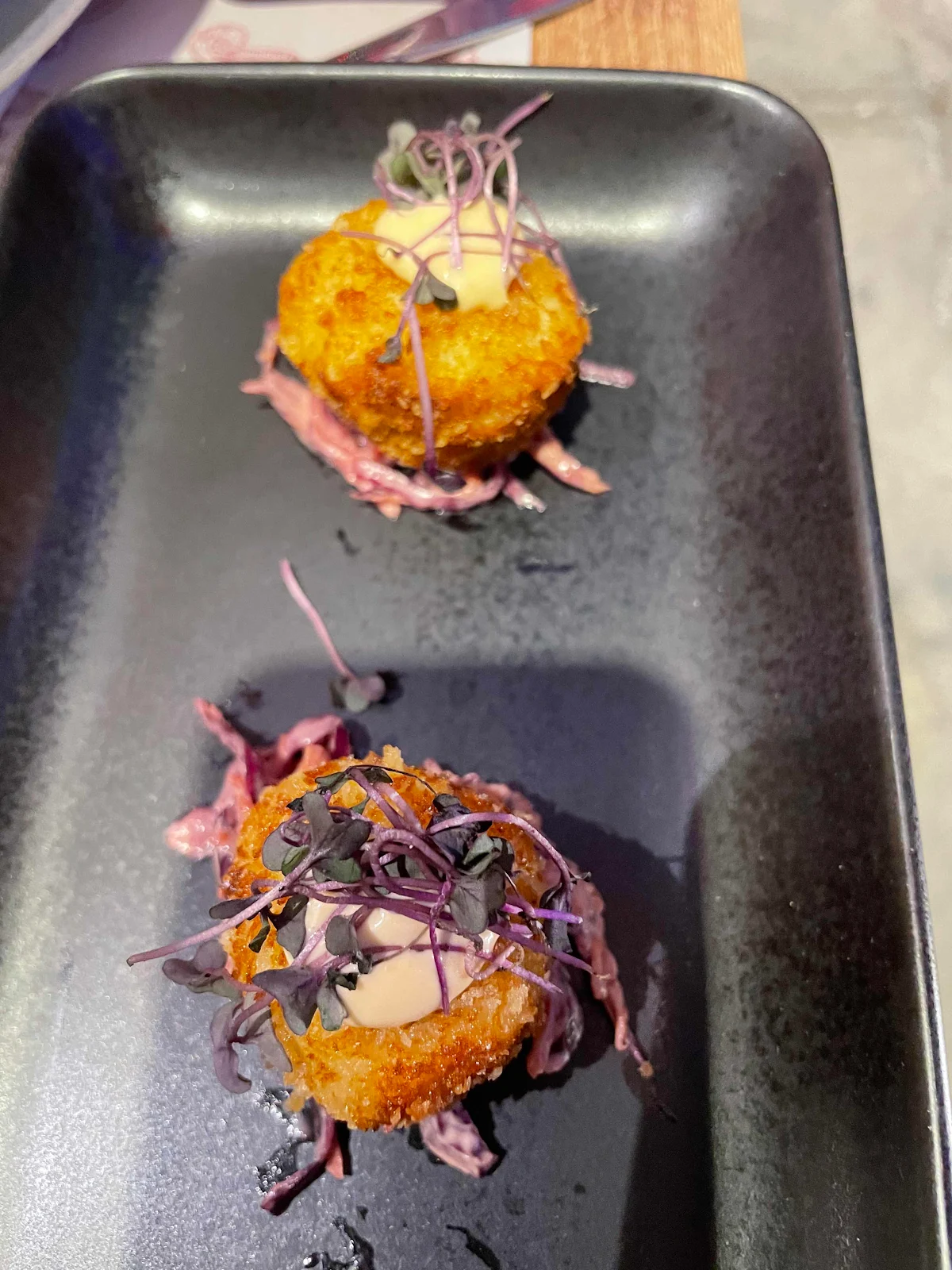 Hugh and Sue recommended Sierpe to Layne and like them we enjoyed the crab dip and Layne the retired teacher enjoyed helping the waiter to expand his meager grasp of English. The language of travelers is not very spoken in Colombia so some Spanish is helpful. Shrimp croquettes, equally good: