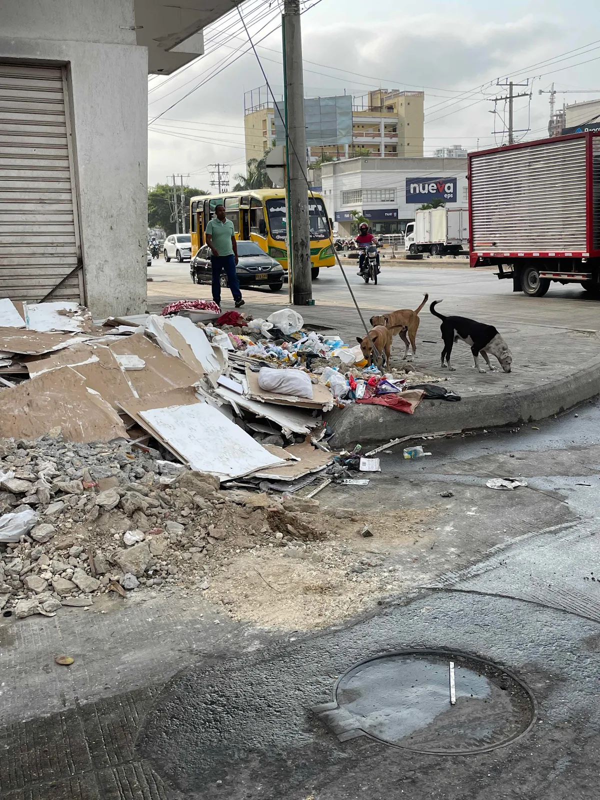 I was just driving down the street and I saw the body shop so I did, as Colombians do, and stopped on the street. Worked out pretty well! We were getting our police indirection when Andrews car started his odyssey.