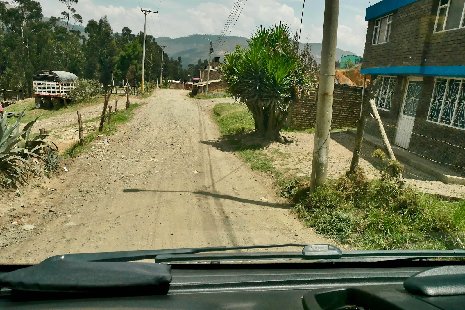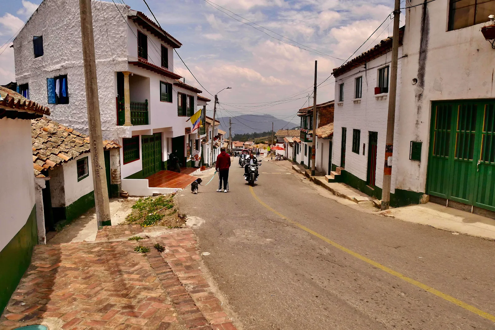 Mongui sits high in an Andean valley at 9600 feet. Or at least that seems high to us at the moment. In the future we will feel as though we are at sea level if we get below 10,000 feet…and the road to this precious jewel of Colombian tourism is less than perfect. Leave the industrial city of Sogamoso behind and you encounter stretches of crap road.