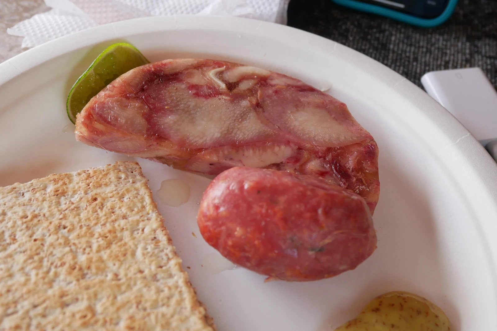 We picked up some local meat delicacies the usual sausage and head cheese to have a picnic lunch aboard GANNET2 in the grassy parking lot.