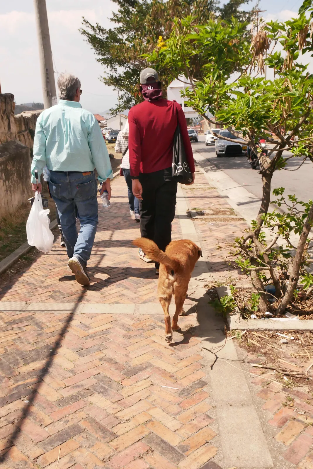 I kept him on his leash outside the pedestrian zone created for the holiday but otherwise when we were in the car-free zone he wandered around on his own each of us keeping an eye on the other. I talk to him in English so from time to time the Colombians ask “is he American? Does he bark like our dogs?”