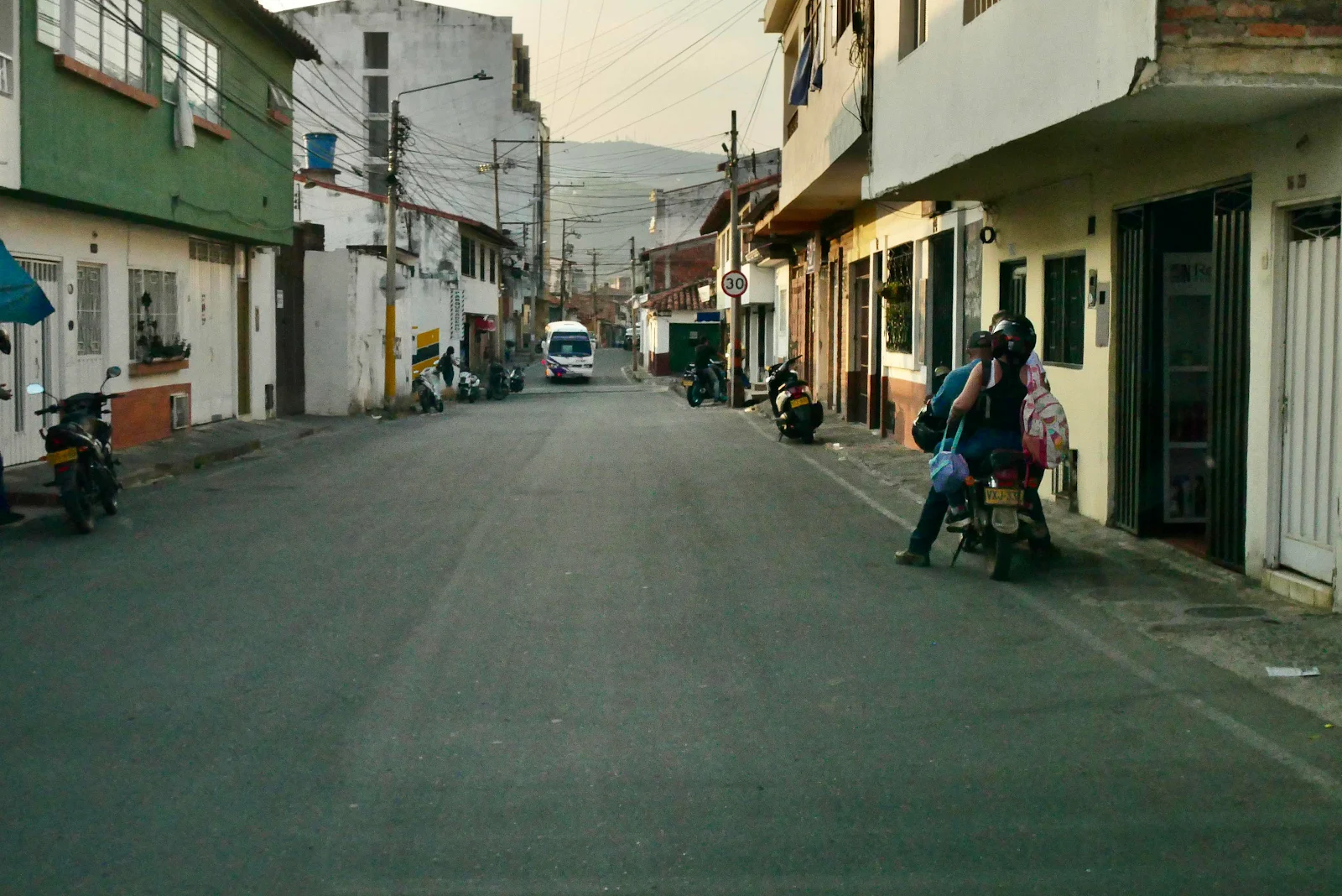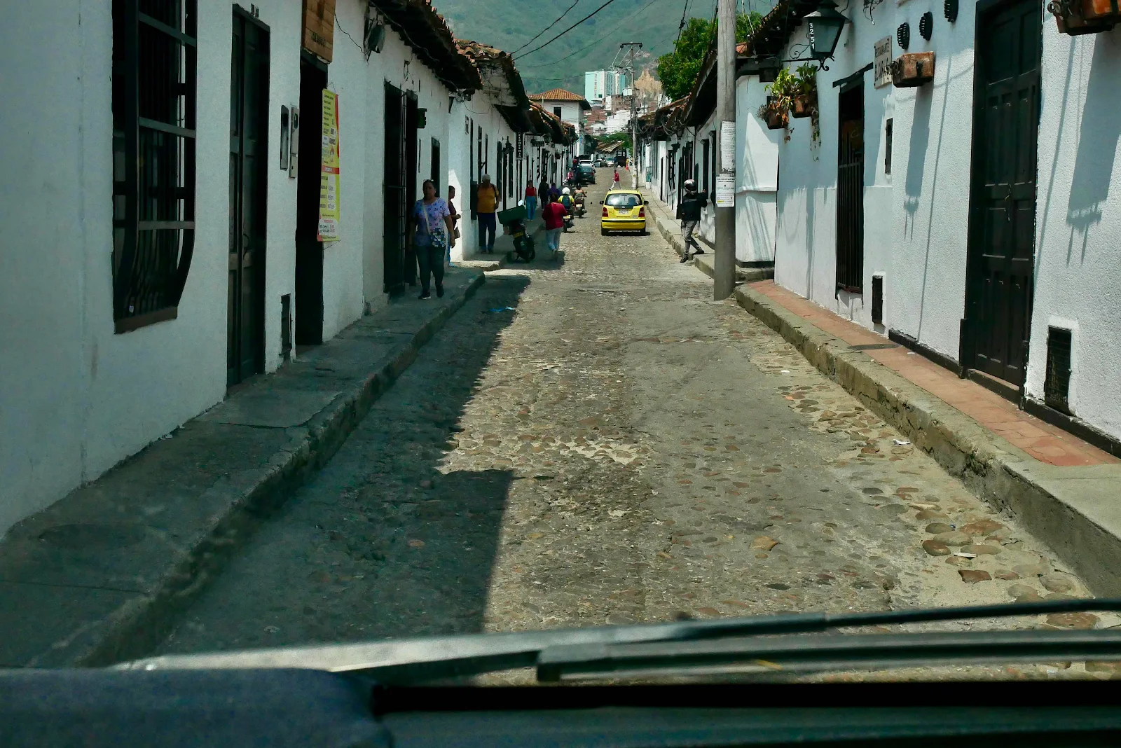 This is San Gil about half an hour from the campground and I’d advise you to stay away. I lost my shit here when Google Maps sent us up a dead end and I had to back down a narrow street for quarter of a mile. Not a wide one like this:
