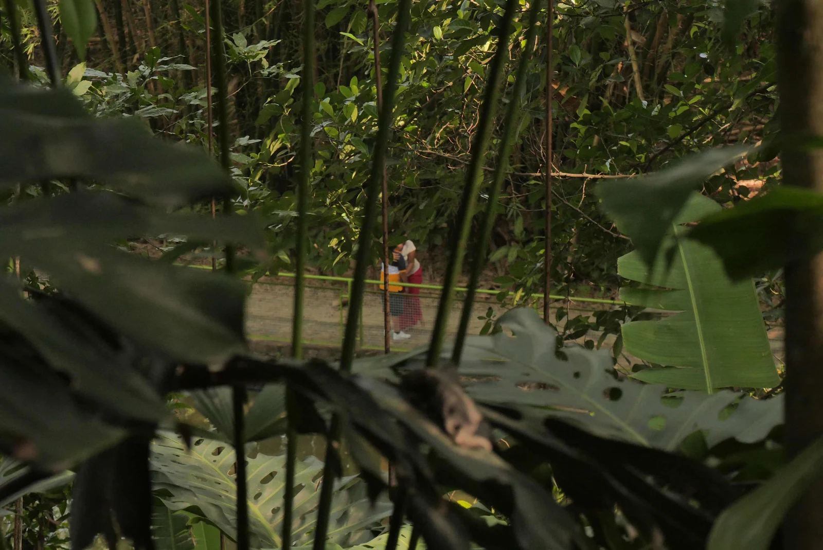 We paid two dollars for an hour’s stop and it was worth it for the ease of visiting the park. Luckily the entrance gate roof was tall enough and we fit in one corner under the ridiculous low roof lining the lot.