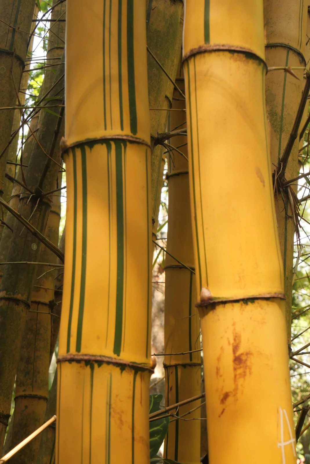 The raked leaves are collected in bamboo compost bins.