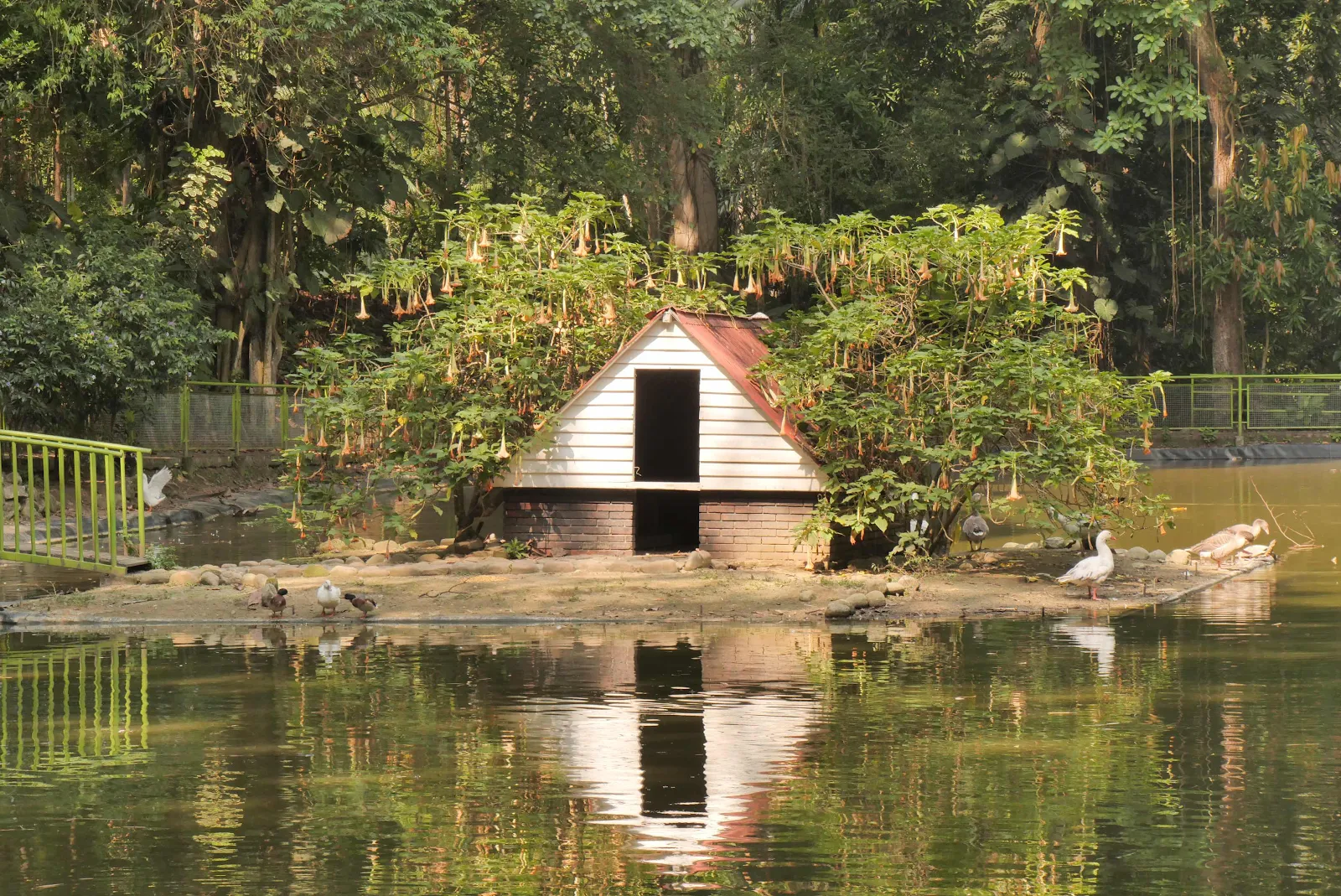 And through the trees you can see some pretty wrecked housing. I wonder who might live there next to this oasis.