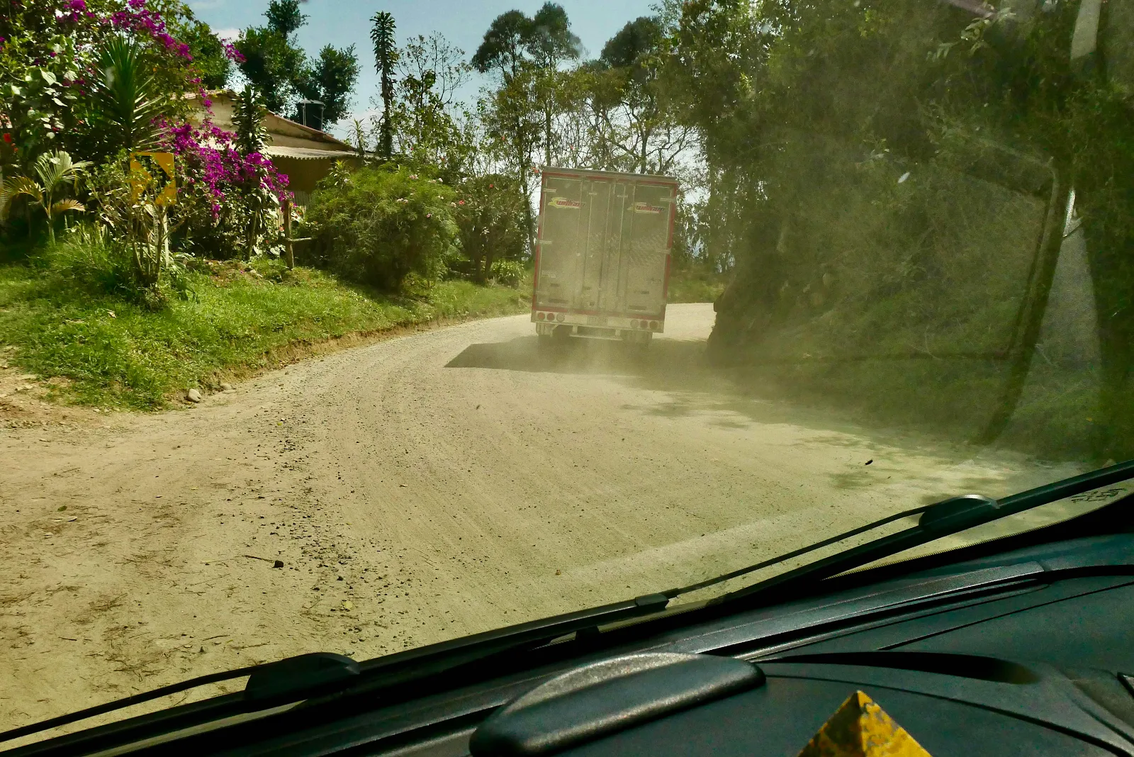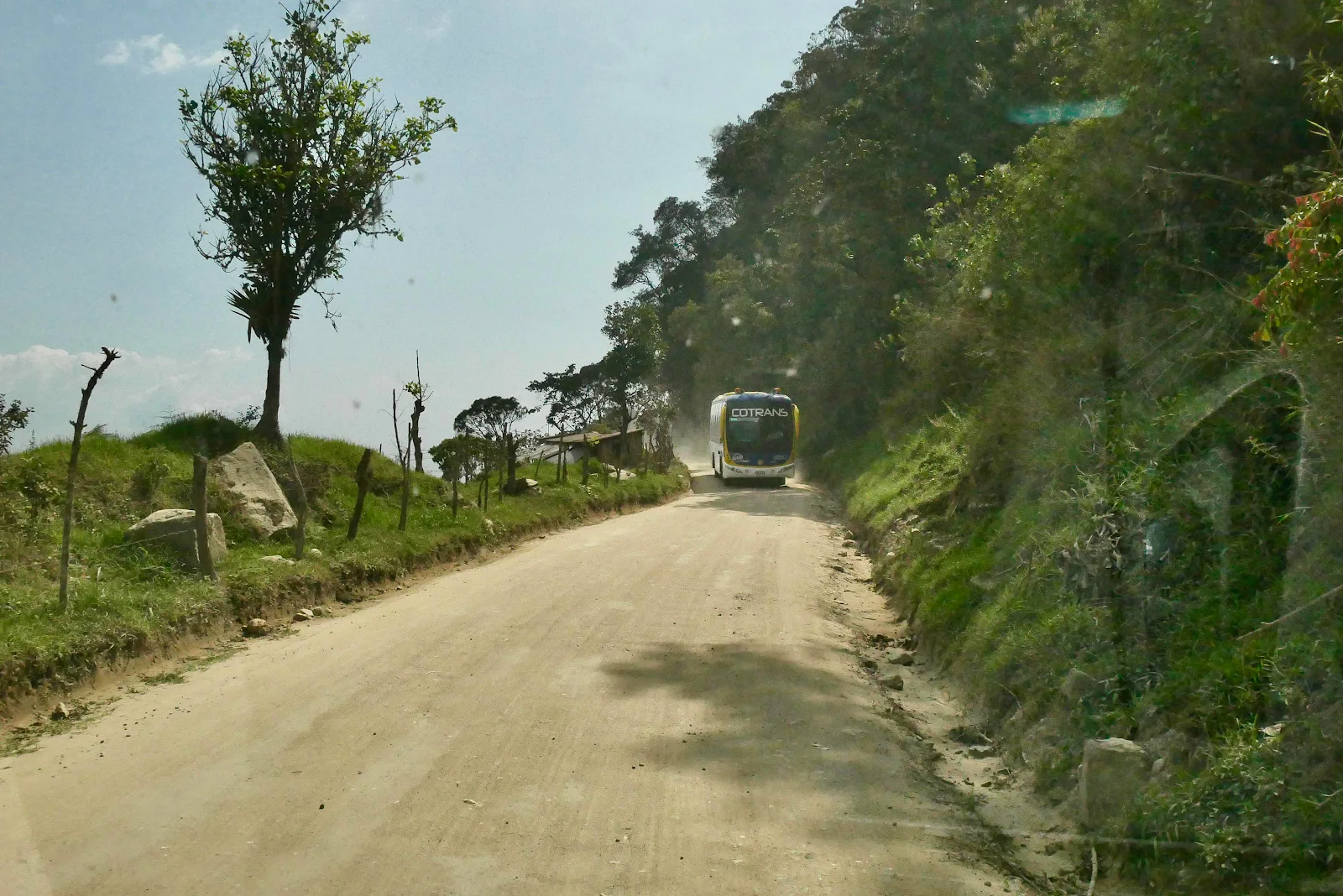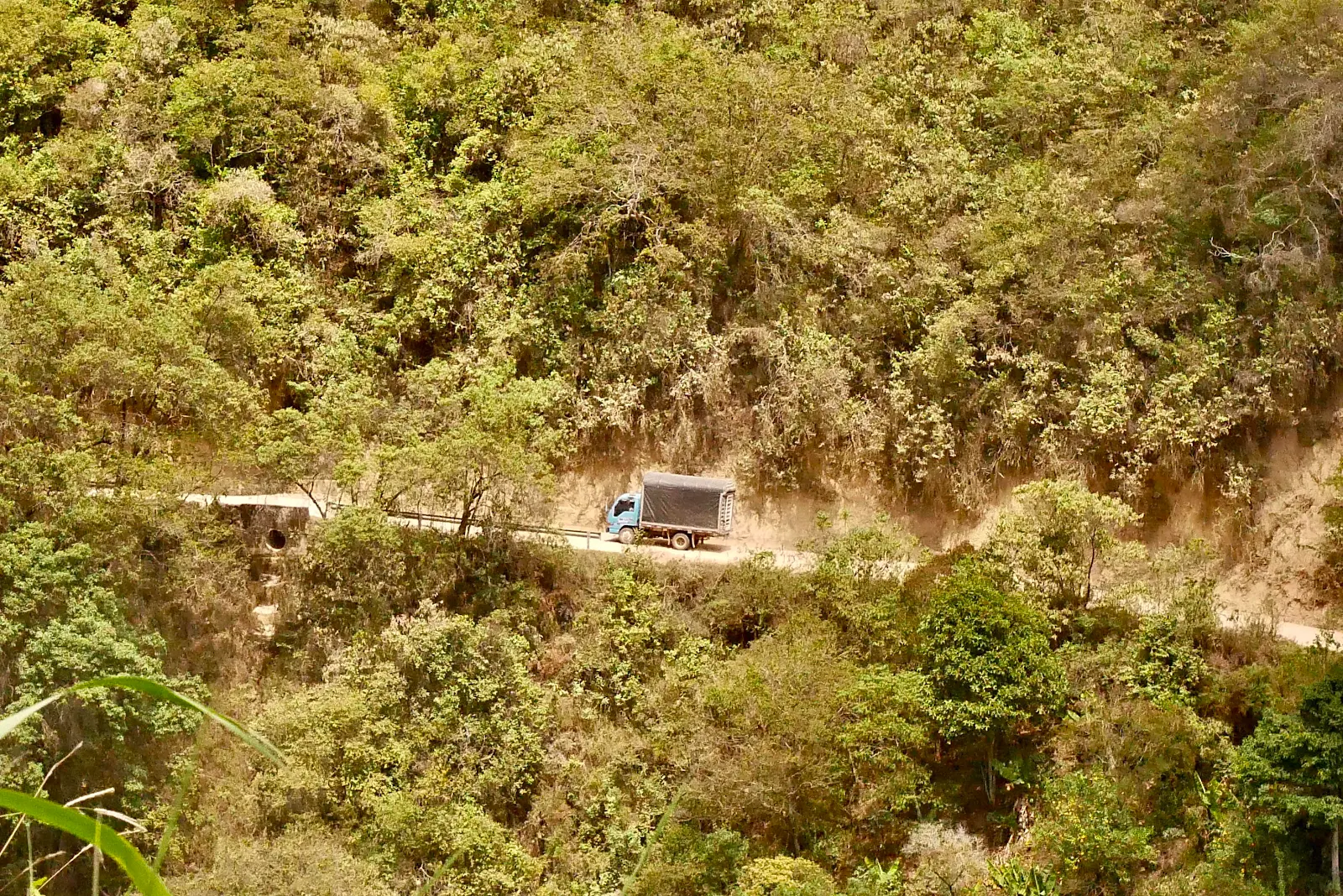 Okay then. Confidence inspiring it was not. I wondered if at some point the trucks and buses refusing to slow down might have dislodged an end or something. I hoped the US embassy in Bogotá would write a strongly worded diplomatic note were we to plunge…but we were fine, diplomatic incident narrowly averted.
