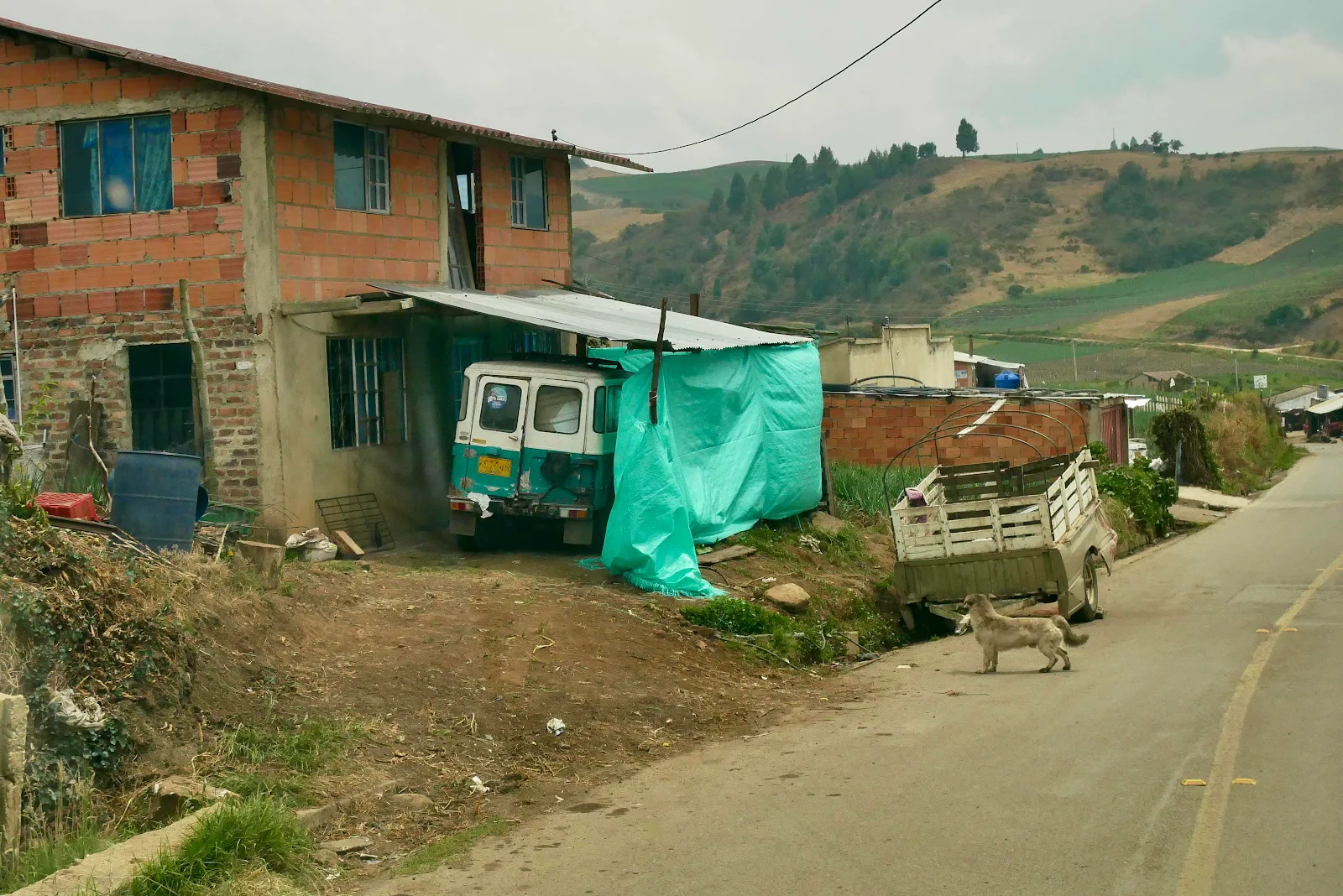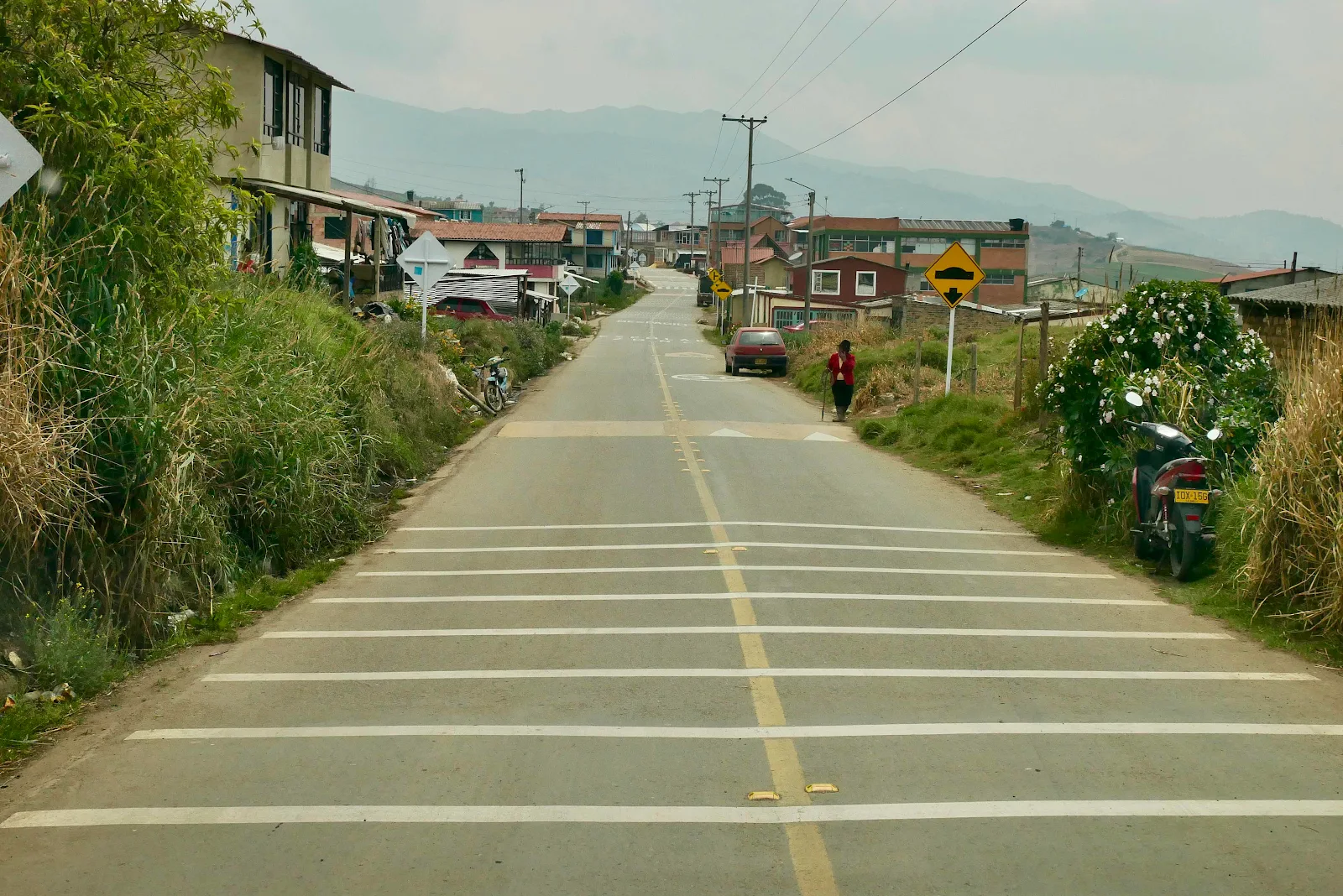 In Colombia they call Mexican style “topes” “muertos” or dead men and though most are well marked and they are far fewer in number than in Mexico they continue to be an aggravation on the road. You have to come almost to a halt in a heavy van or you risk spilling everything inside while prematurely wearing out your suspension. You can see by lots of topes and steel knobs in the road leaving Aquitania. No surprise our average speed is around 20 mph.
