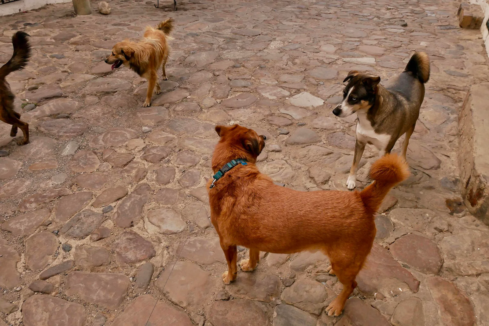 Back on the streets Rusty is learning to hold his own among packs of friendly dogs.