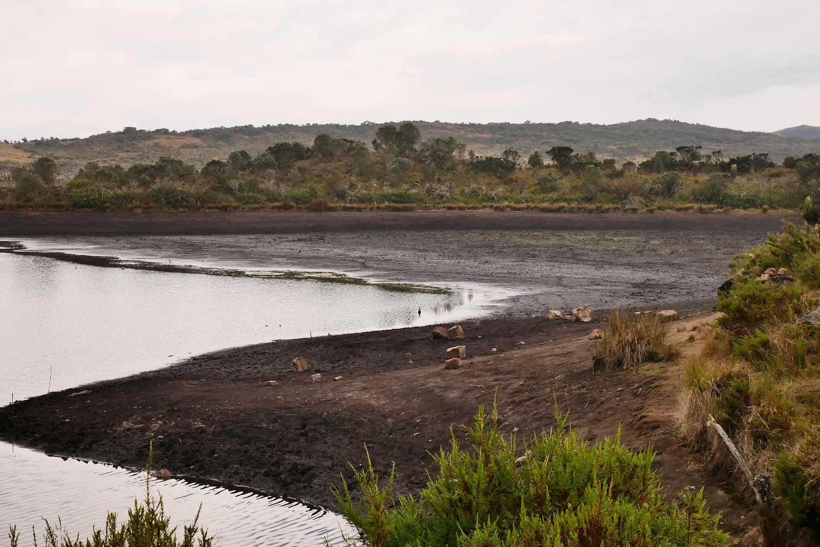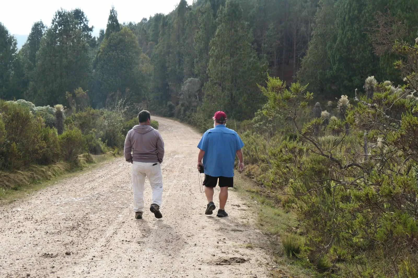 We parked next to the lake which was surprisingly dried up despite the efforts of the Big Friars to catch water from the mist and direct it to the Big Swamp. And the sun came out. Hildebrando told us the house across the lake is occupied by a local man hired as a ranger to protect the friars. That promotion came after he spent some time hacking them down to expand his grazing land. The poacher turned game keeper.