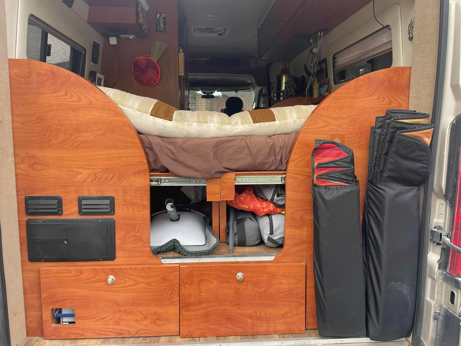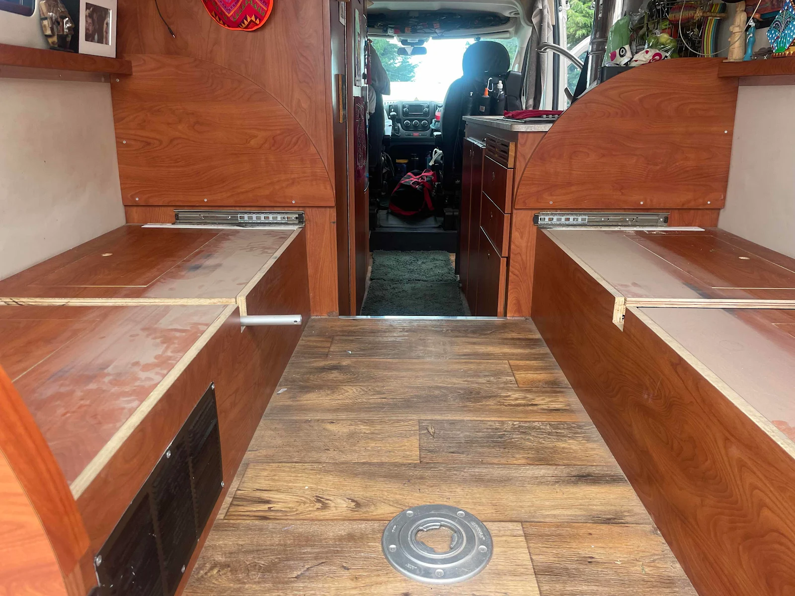 When we had Custom Coach build our van we also had a complicated mechanism installed to allow the bed to become two couches.