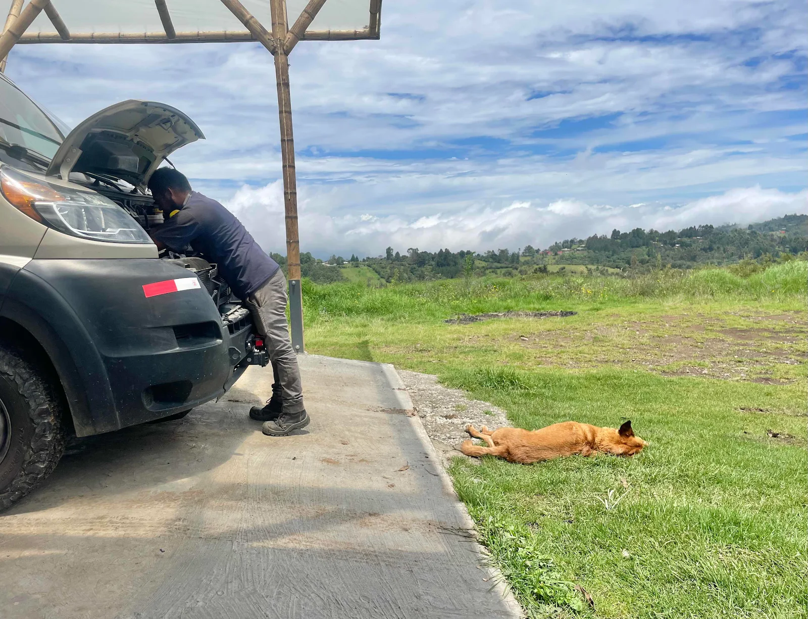 And so we had to tear ourselves away from the swimming pool and the heat and humidity of Cali, a city we have come to know rather better than we had planned to, and climb back up into the mountains. We stopped for gas and to have lunch off the PanAmerican Highway and the gas station attendants (gas is mostly full service around here) were fascinated to see an RV. We give a great many tours to curious Colombians. Van life is not at all normal around here but they all mention freedom when we tell them we are retired and this is our only home.