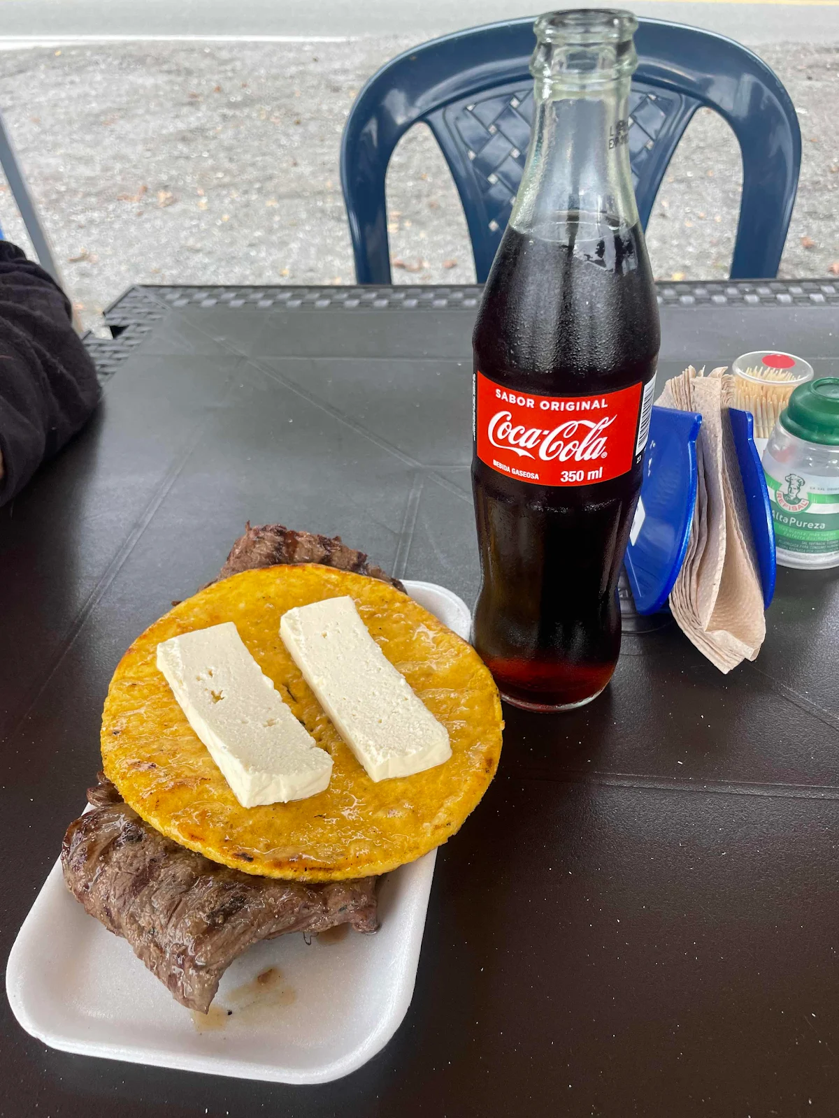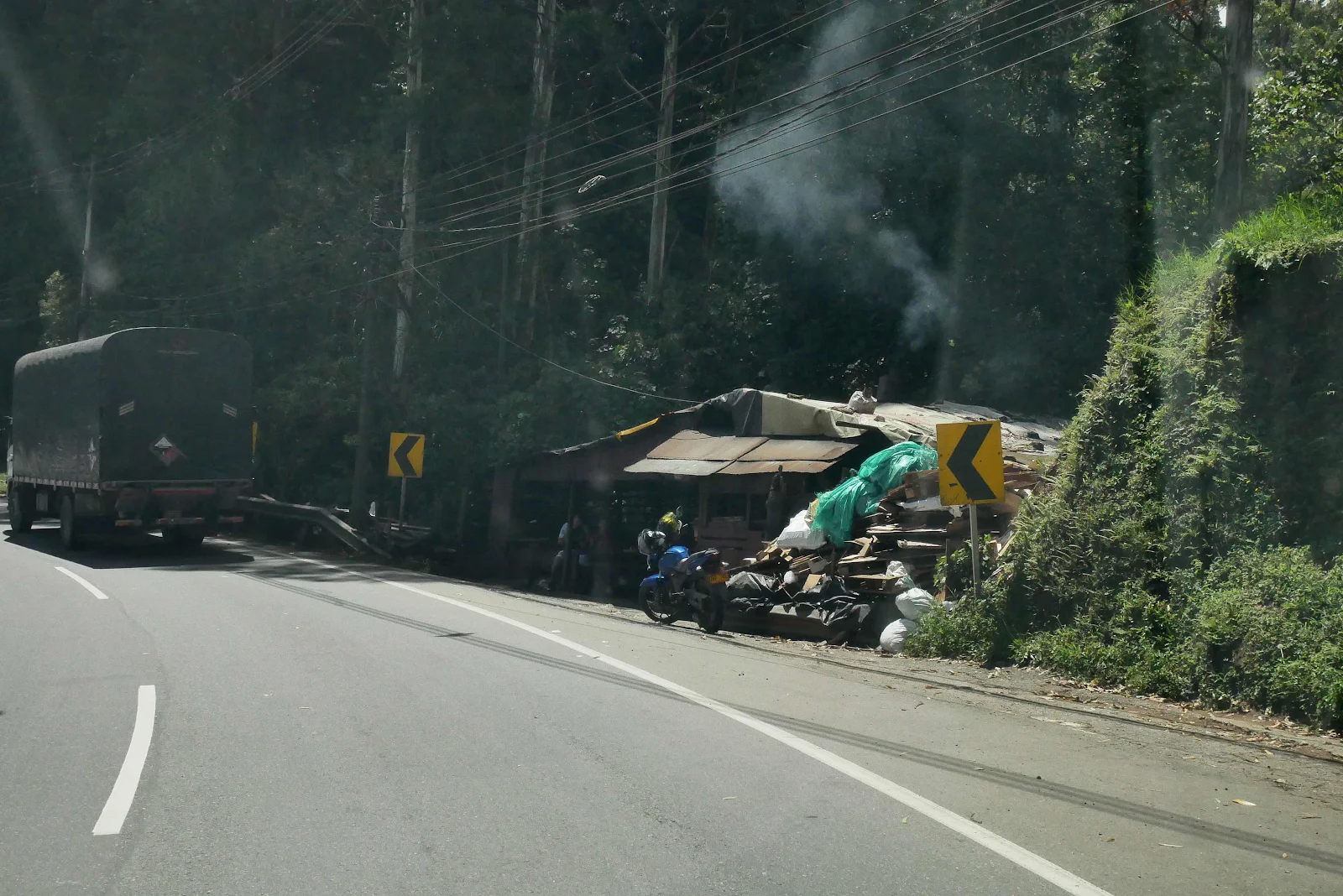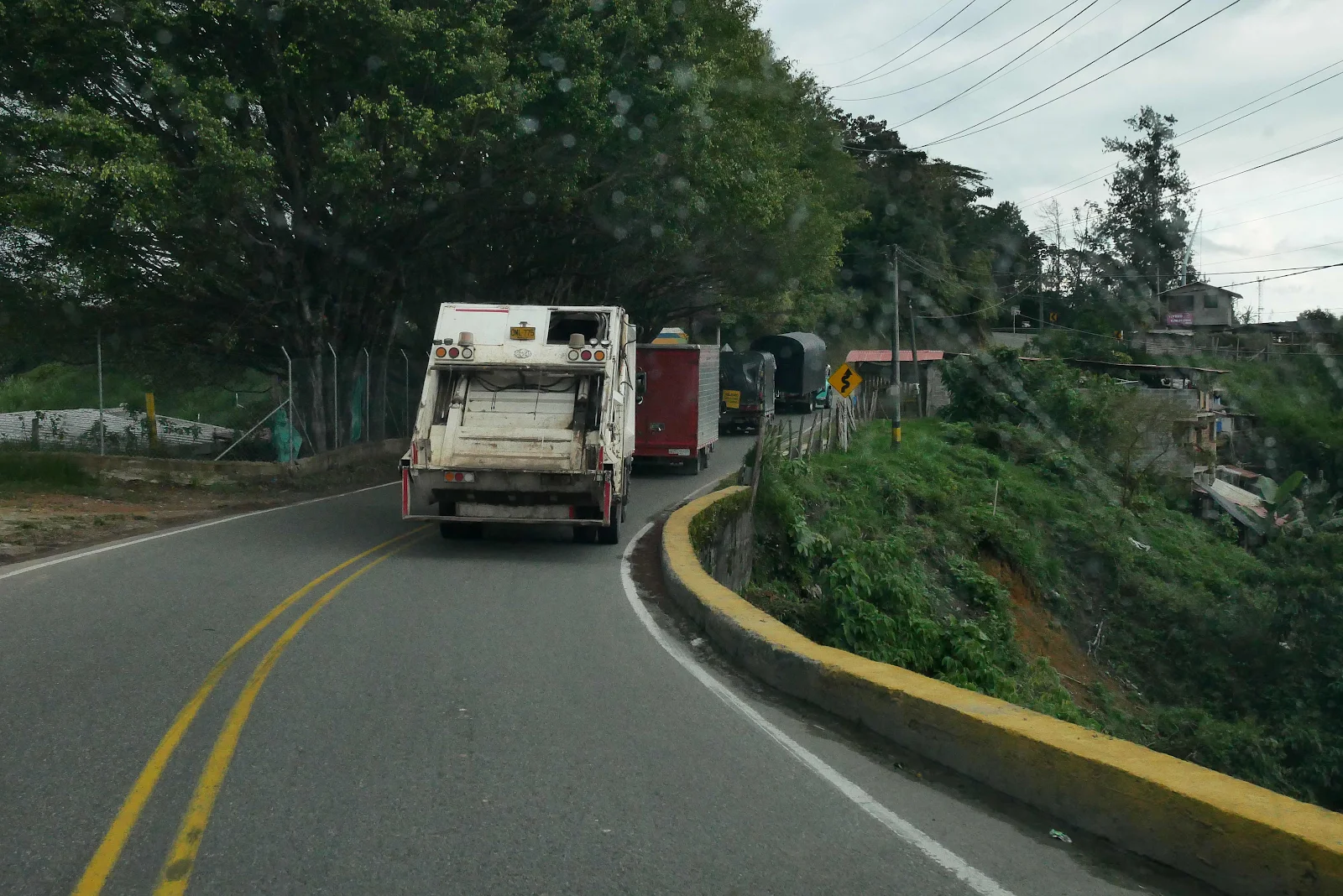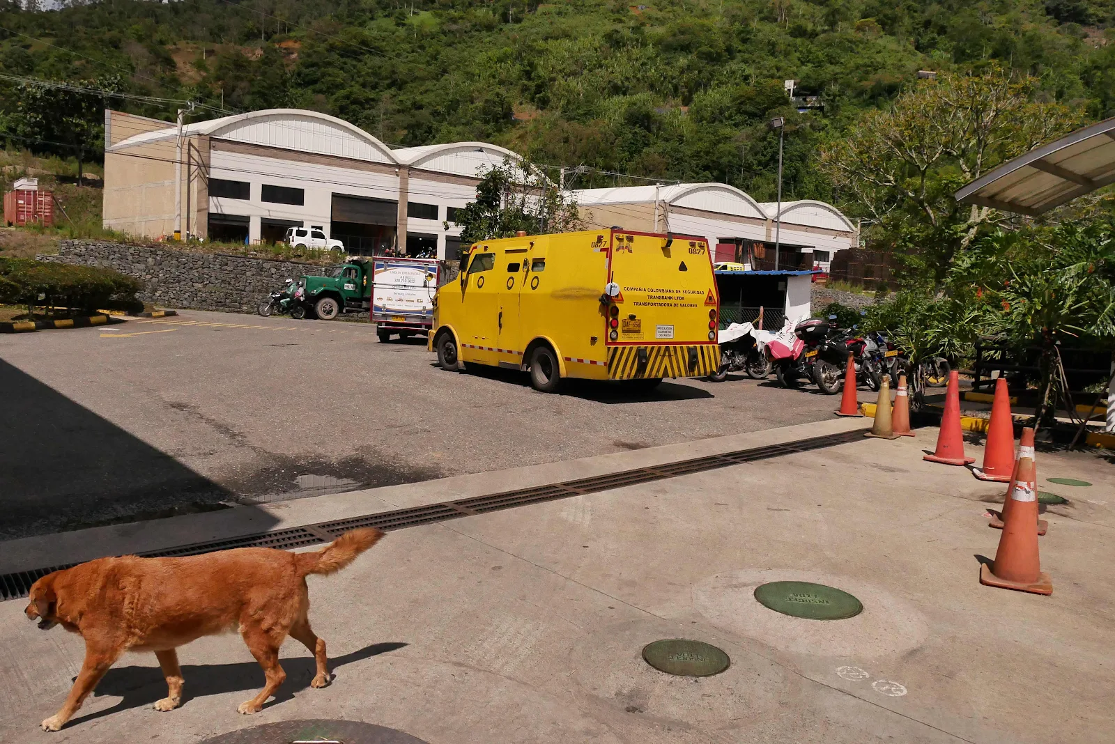 Oddly the idea of running out of gas, as stupid as that might be, didn’t freak us out. We knew we’d get help and if we got a bit slowed down that was no big deal. It’s really nice traveling with your home. And a gas stop allows Himself to stretch his legs. The yellow box is the Colombian equivalent of an armored bank truck and they are everywhere.