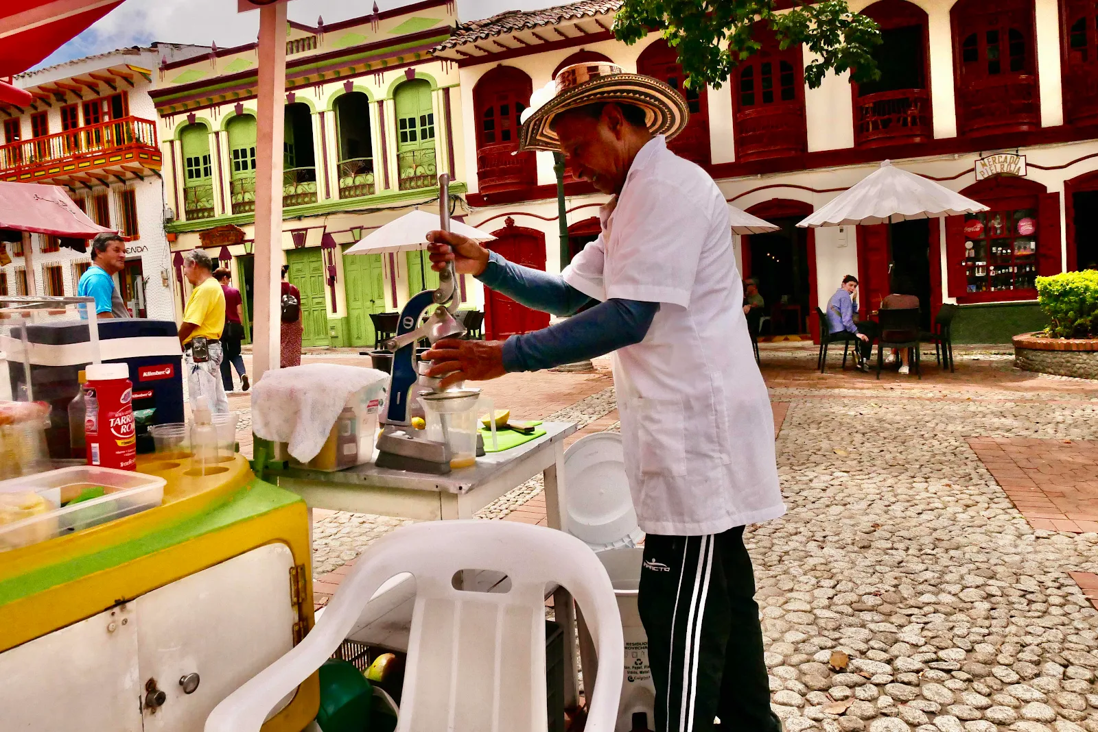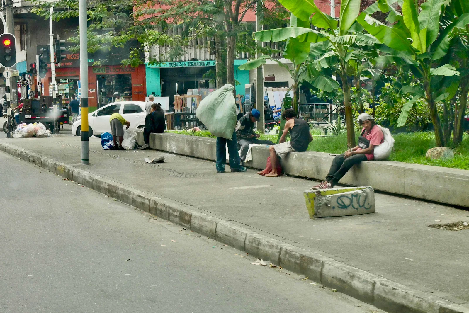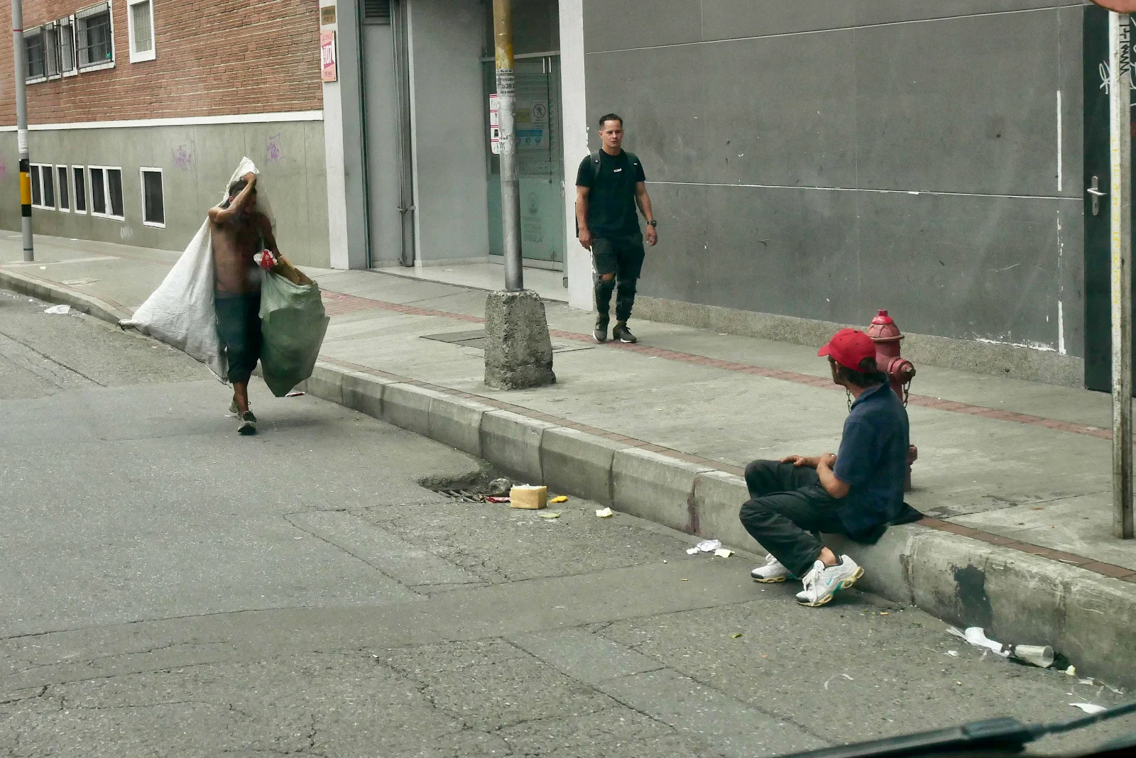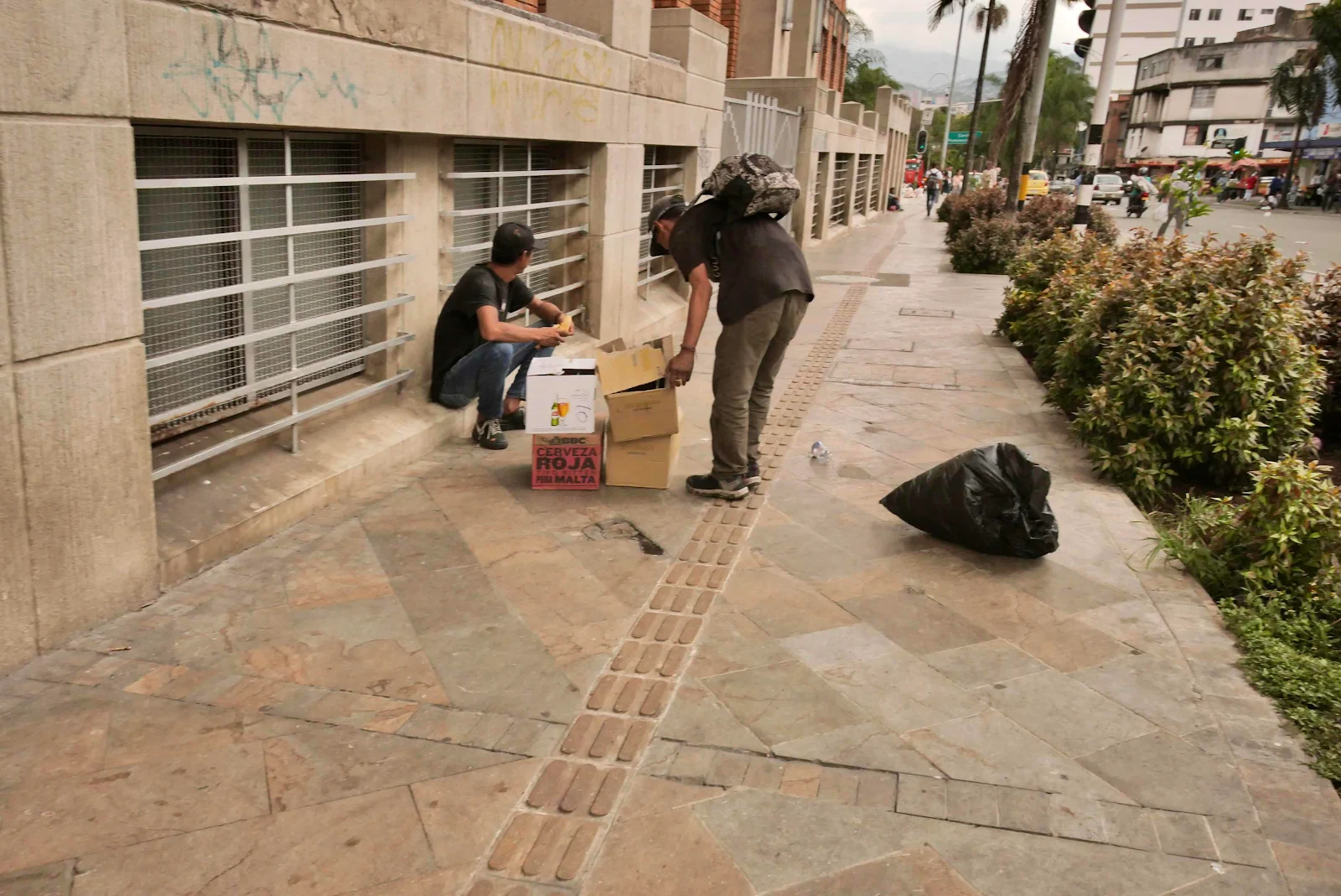 I snagged the photo above of a guy huffing something unsavory at Plaza Botero. His buddies down the sidewalk were hustling something and though I won’t show you unless you ask nicely the flowerbeds were full of human faeces and sawdust in an effort to dry the place up. The stench was foul as you might imagine.