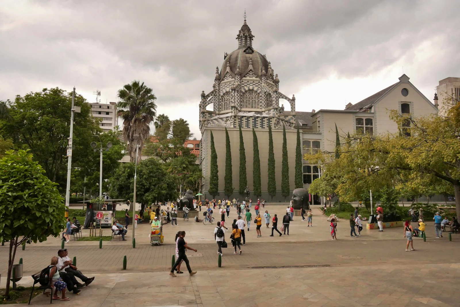 We made our way to the Museum of Antioquia and found a parking lot protected by an armed security guard with a German Shepherd on a tight leash. That’s how secure downtown is where tourists go.