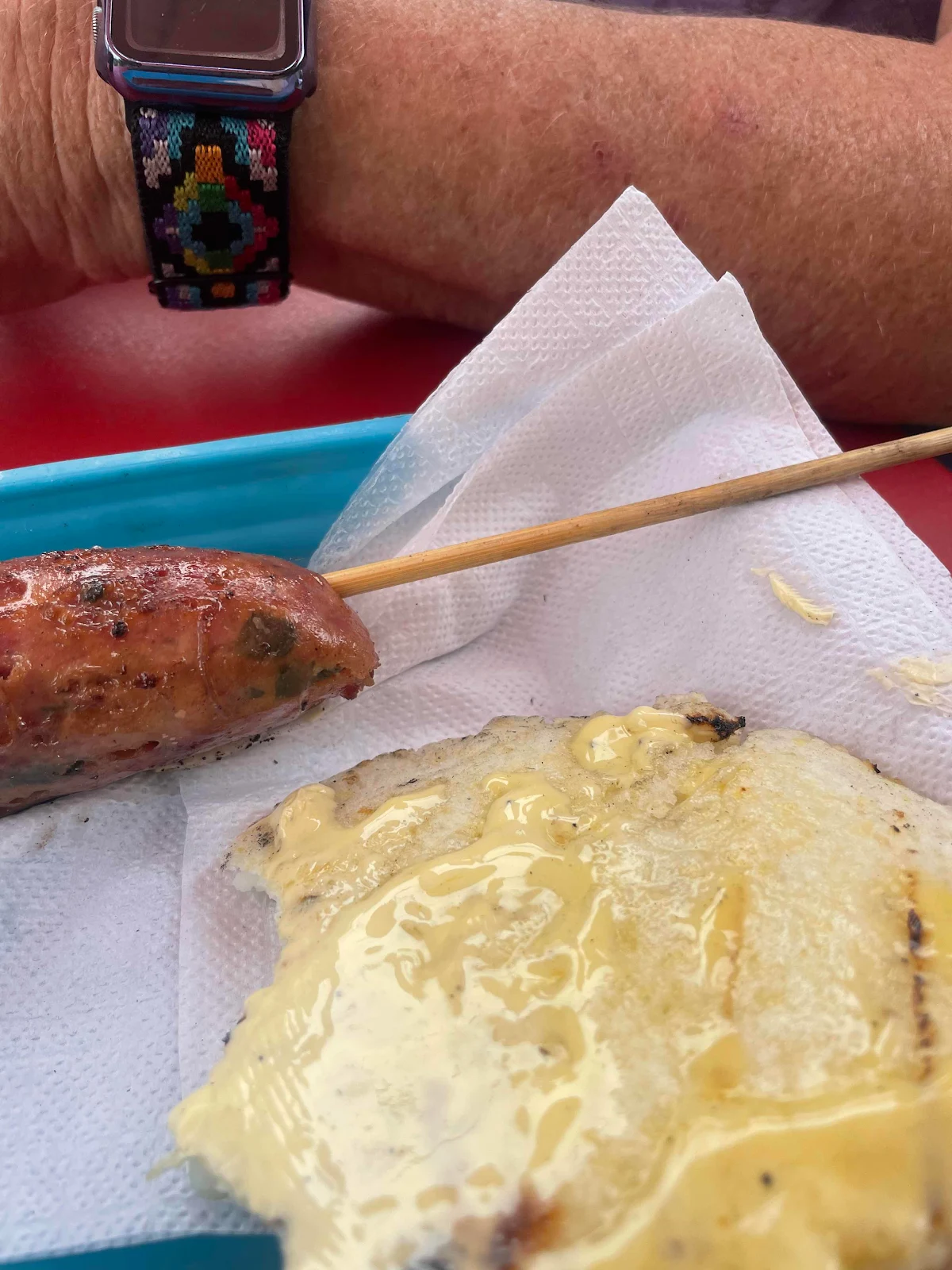 …and we got sausage and arepa for brunch.