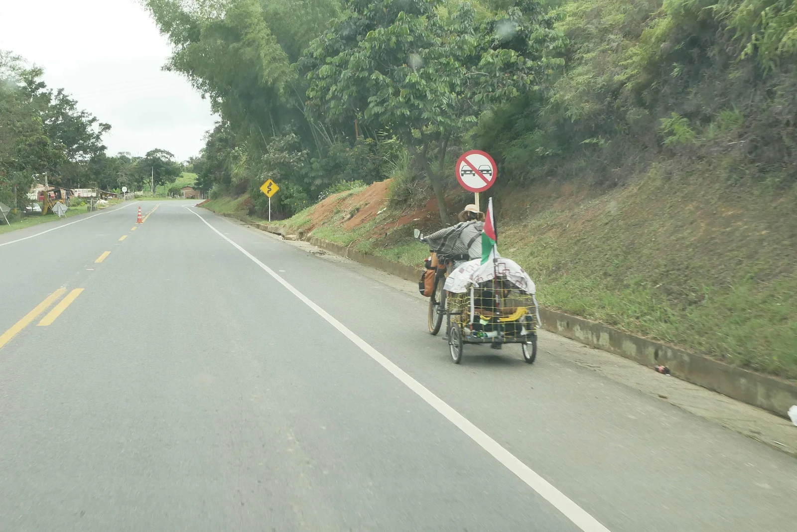 This overlander on a bicycle with a Palestinian flag passed us later in the traffic jam intrepidly pedaling up the hills.