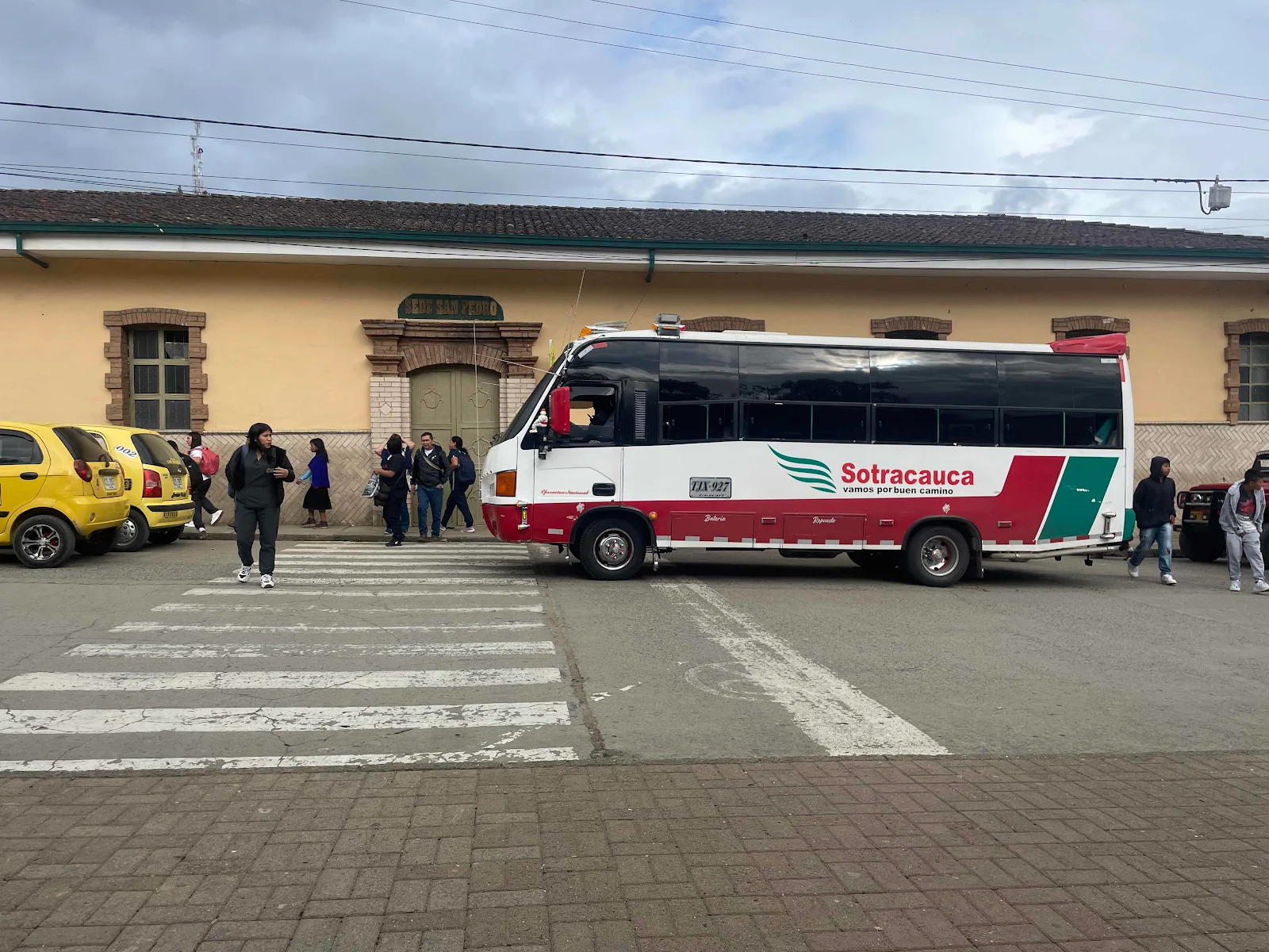 This is the bus stop with yellow cabs parked nearby. If you can’t afford a shared cab you can ride pillion on the back of a moto taxi which costs even less.