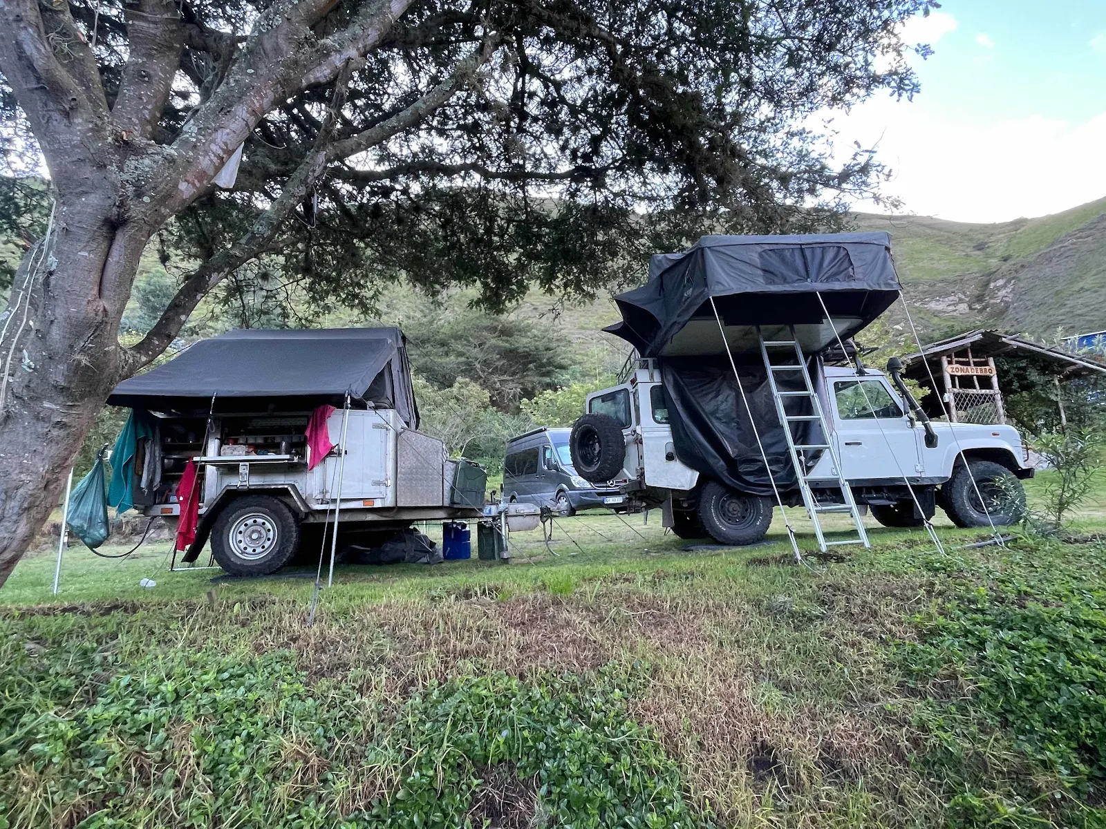 Mom and Dad have five kids and the Land Rover and trailer each. transform into a spacious roof top tent.