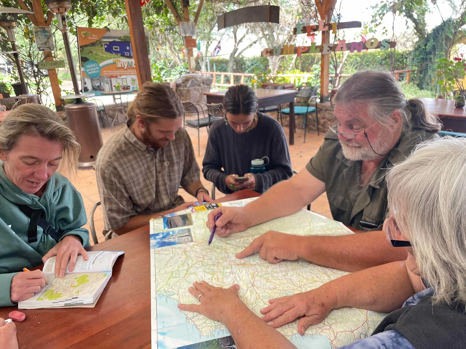 Hans the owner of Finca Sommerwind (summer wind farm) has been in Ecuador married to a local for 14 years so he is well known to travelers and Ecuadorian authorities. He helped get us the flat bed and his restaurant is a place locals come to as well as travelers staying at Sommerwind.