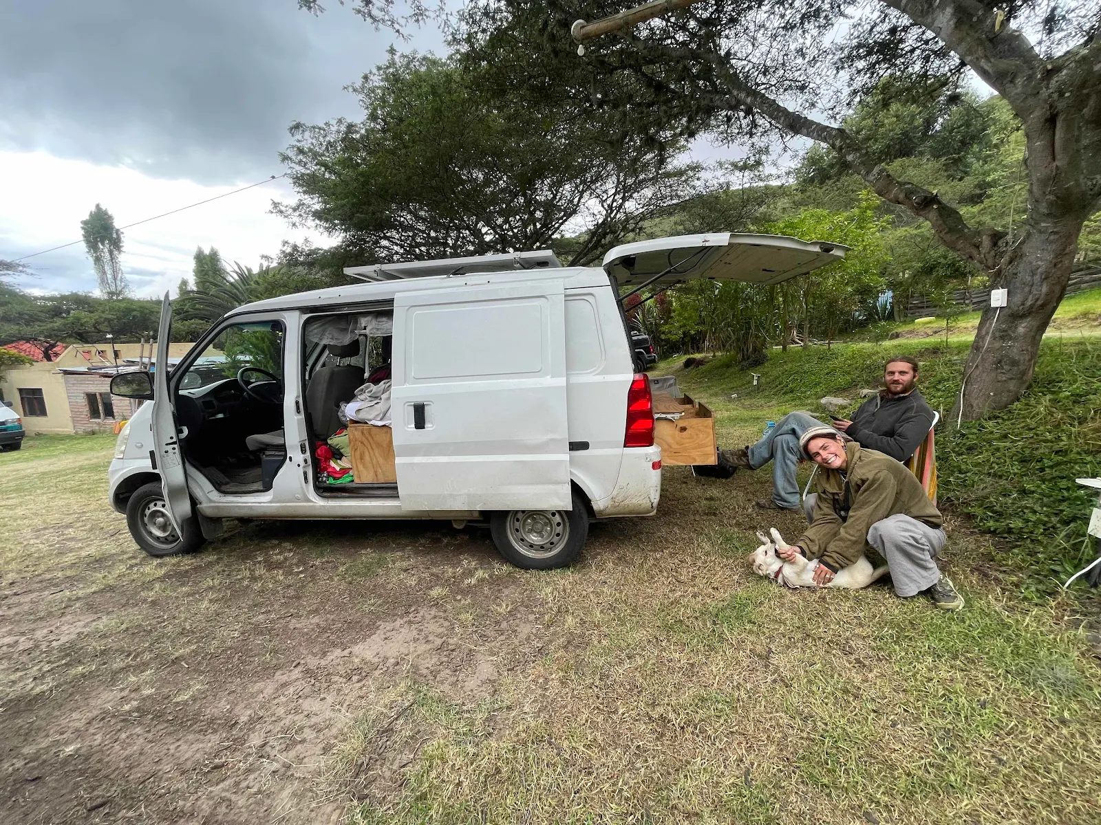 Matilda and Sammy from England bought their tiny Chinese-built N300 van from a traveling rock climber in Chile. It’s a basic bed space with outdoor kitchen, not enough room and prone to breakdown.