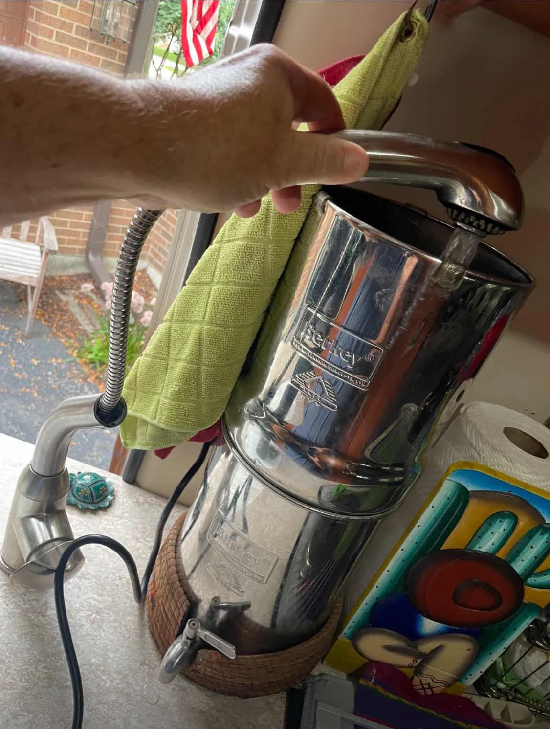 Most vans have inline water filters to purify the water that comes out of the faucet. The concern for us as always was finding spare parts driving around these countries. The Berkey filters thousands of gallons through its charcoal filters and we’ve used them for years. Berkey is going through some legal controversy with California which doesn’t like their labeling and the Chinese have also been selling cheap knock offs of their filters, but we find the Berkey to be ideal for us. Except how to keep it upright.