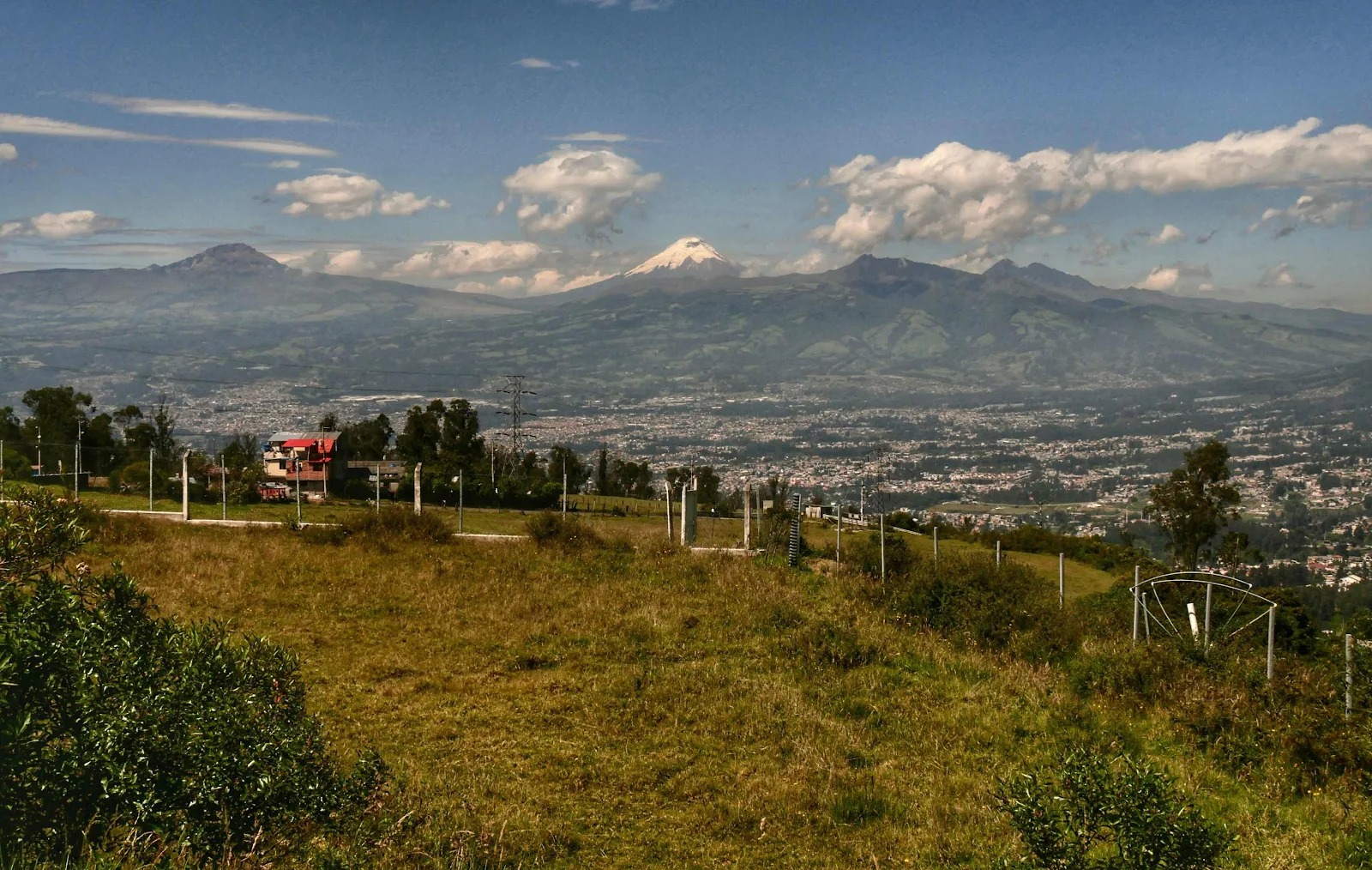 Cotopaxi, at 19,350 feet (5900 Canadian feet) is the second highest volcano in Ecuador where Chimborazo is the tallest but that one is further away.