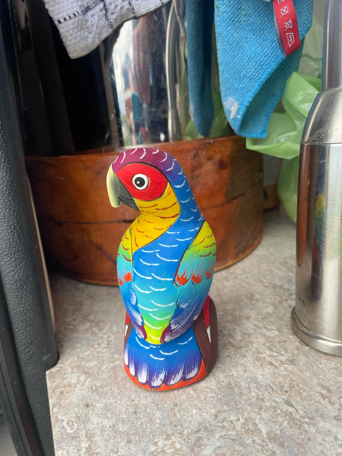 And a colored bead strip, a gift from a Brazilian overlander, she used to cover the cut we had to make in our Berkey water filter holder which was also made in Mindo for us.