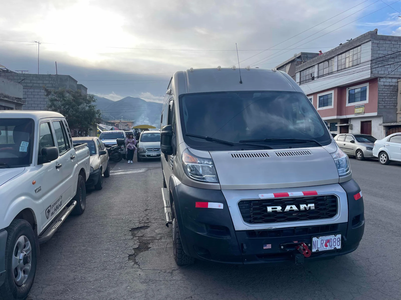 We found another dump with an apparent security guard in site. We asked if we could camp overnight. He looked doubtful. You could, he said but it’ll cost ten dollars. Okay we said. Each he added the light of greed in his eyes. We drove away. “He creeped me out,” Layne said. We drive bs on down past the dogs toward the village of San Juan. It was 4:30 with perhaps 90 minutes of daylight left. Chimborazo had gone already, lost in the clouds.