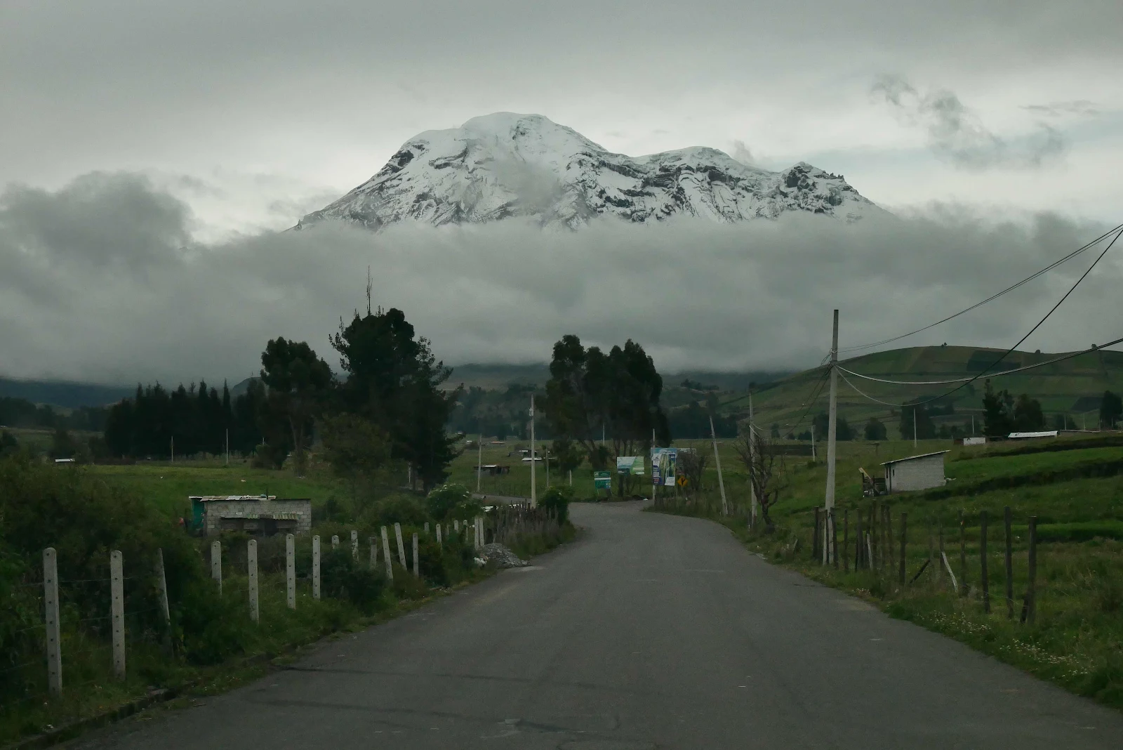 They drove up to the Chimborazo parking lot and hiked up to the climbing refuges around 17,000 feet. It was in the fog so they saw nothing on their climb except local amateur hikers out of a Sunday vomiting copiously along the trail as altitude sickness claimed its victims.